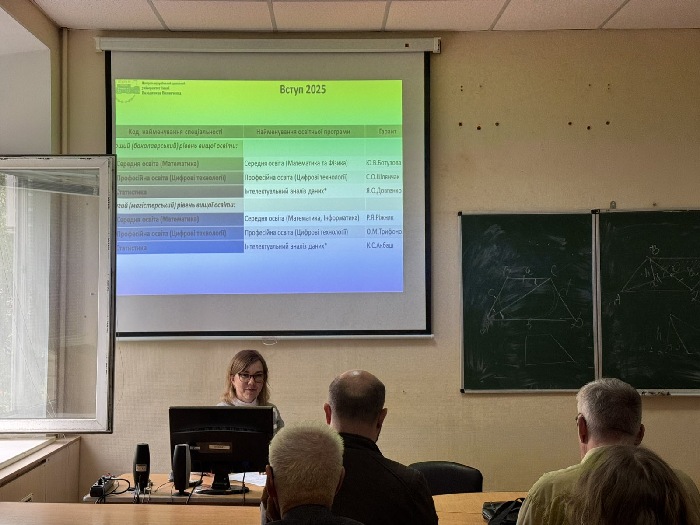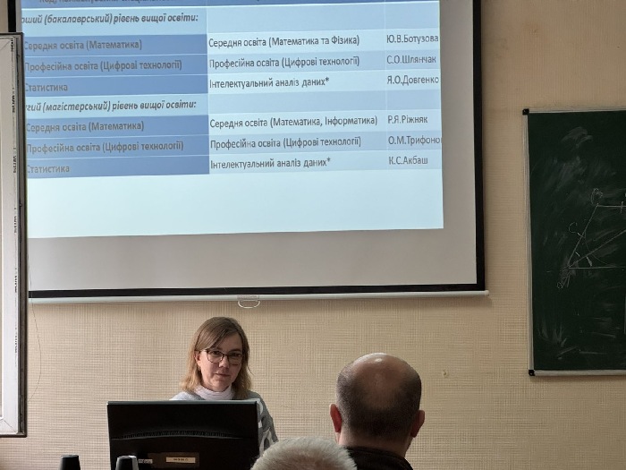 30 квітня 2025 року на кафедрі математики та цифрових технологій відбулося розширене засідання, присвячене обговоренню освітньо-професійних програм, вступ на які планується у 2025 році. Участь у заході взяли викладачі кафедри, гаранти освітніх програм, студенти, випускники та стейкхолдери. Було розглянуто програми як першого (бакалаврського), так і другого (магістерського) рівнів вищої освіти, зокрема: