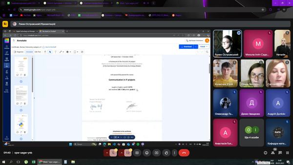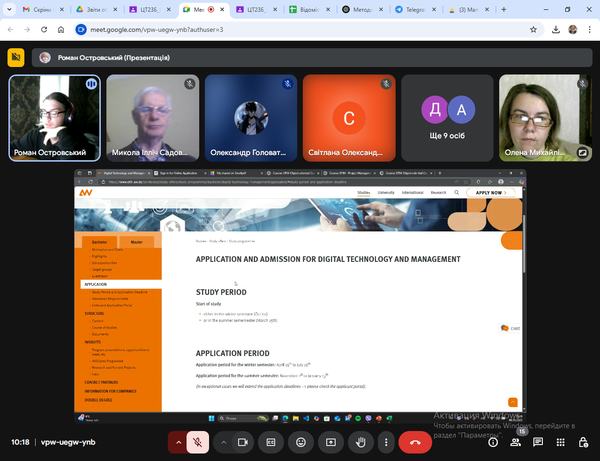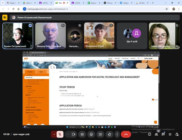 09 травня 2025 року студент групи ЦТ24М Островський Роман поділився досвідом зі здобувачами освіти першого (бакалаврського) рівня вищої освіти спеціальностей Професійна освіта (Цифрові технології), Статистика, Середня освіта (Математика) щодо академічної мобільності. Під час зустрічі він розповів про участь в академічному обміні, розповів, що таке академічна мобільність, як вона реалізується в закладах вищої освіти, а також надав практичні поради щодо підготовки до участі в міжнародних програмах.
