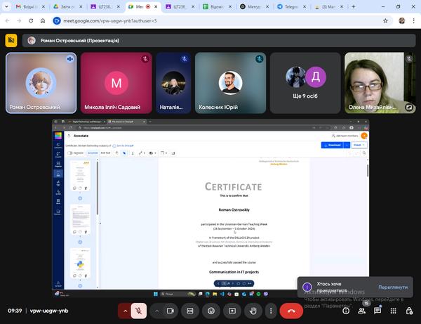 Особливу увагу Роман приділив тому, як відбувався його освітній процес у рамках мобільності. Здобувачам освіти було представлено приклади дисциплін, які він вивчав за кордоном, серед них: