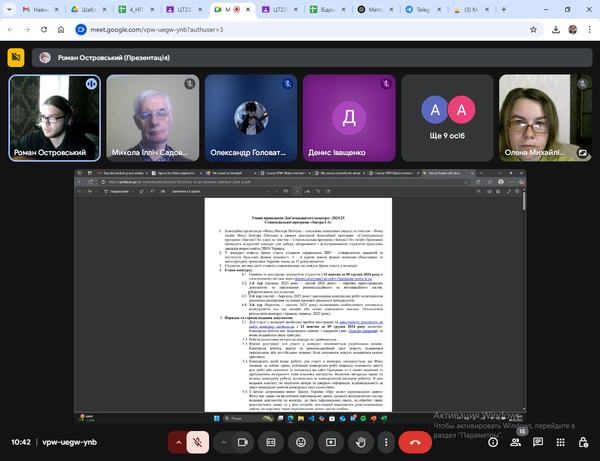 Також були детально розглянуті основні етапи конкурсу: подання заявки, попередній відбір, рецензування, участь у фінальному етапі та оголошення результатів. Лекція стала цінним джерелом інформації для здобувачів освіти, які зацікавлені в участі у всеукраїнських освітніх ініціативах і прагнуть реалізувати свій потенціал у межах престижних програм підтримки молоді.