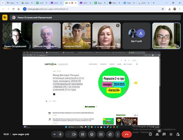 09 травня 2025 року студент групи ЦТ24М Островський Роман провів лекцію для здобувачів освіти першого (бакалаврського) рівня вищої освіти спеціальностей Професійна освіта (Цифрові технології), Статистика, Середня освіта (Математика), присвячену стипендіальній програмі «Завтра.UA», яку реалізує Фонд Віктора Пінчука.