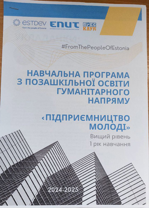 Заступниця директора з навчально-виховної роботи ДЗП(ПТ)О «Кропивницький професійний ліцей сфери послуг і торгівлі» Алєксеєвець Вікторія Саввична та кандидатка педагогічних наук, доцентка, доцентка кафедри педагогіки та спеціальної освіти ЦДУ ім. В. Винниченка Краснощок Інна Петрівна розповіли про особливості програми з позашкільної освіти гуманітарного напряму «Підприємництво молоді», що розроблена в рамках проєкту «Нові можливості українських жінок та молоді», що його втілюють громадська організація «Прес-клуб реформ» (Кропивницький, Україна) та Естонський жіночий центр досліджень і ресурсів (Таллінн, Естонія) та фінансується ESTDEV – Eesti Rahvusvahelise Arengukoostoo Keskus EST, Естонським центром міжнародного розвитку.