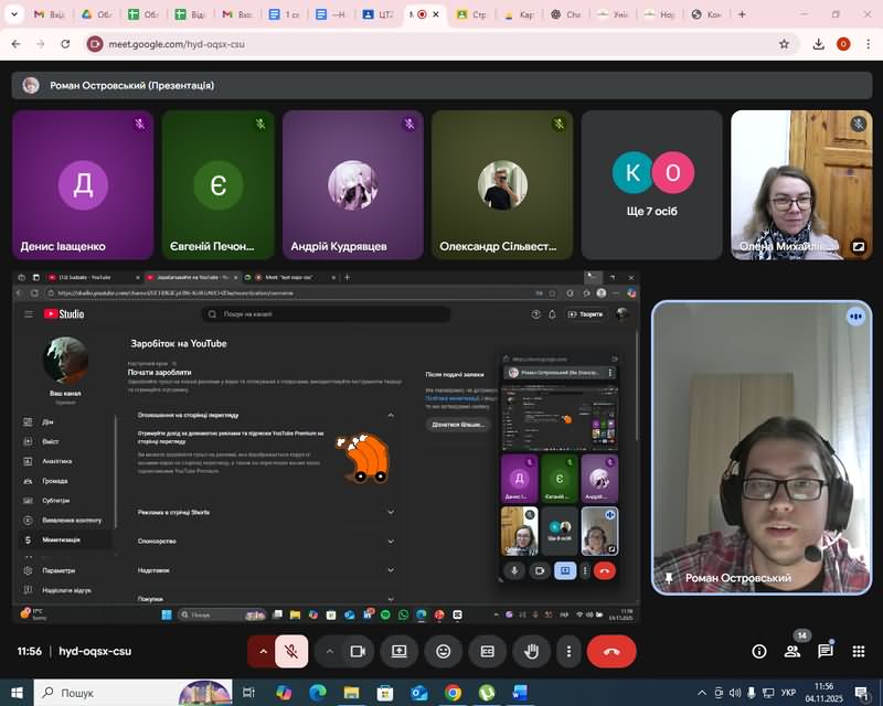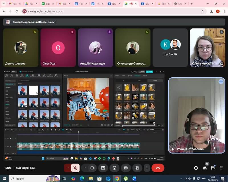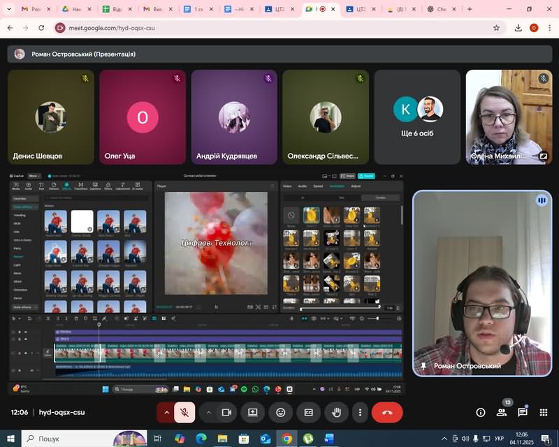 Особливу увагу було приділено створенню навчальних відео для використання у професійній освіті, а також важливості розвитку відеокомпетентностей майбутніх педагогів цифрового профілю. Лектор поділився власним досвідом роботи у сфері відеомонтажу, навів приклади власних освітніх і творчих проєктів, а також відповів на запитання студентів щодо оптимізації процесу створення відео.