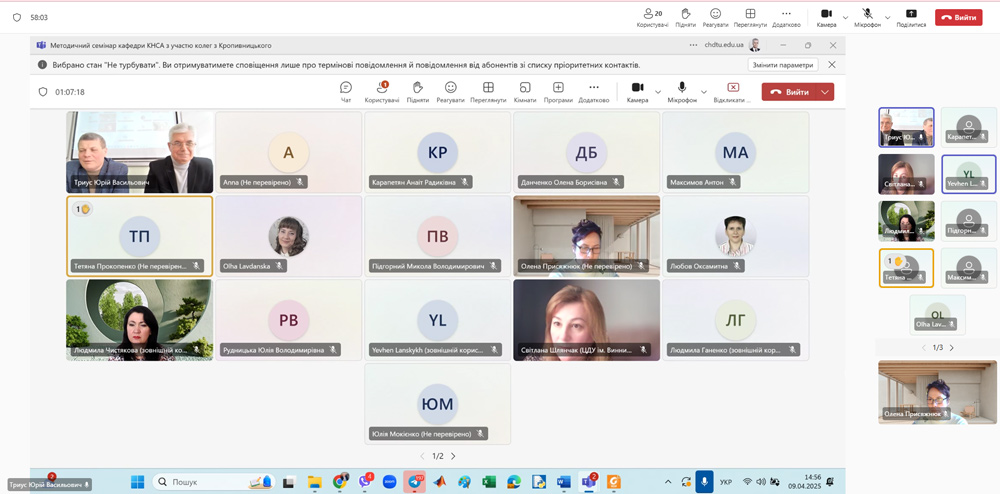 9 квітня в онлайн форматі відбулось розширене засідання методичного семінару кафедри комп’ютерних наук та системного аналізу Черкаського державного технологічного університету та викладачів кафедри інформатики, програмування, штучного інтелекту та технологічної освіти. На порядку денному були два актуальних питання.