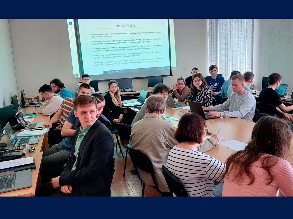 В останні дні травня студенти груп КН22б, КН23б-с та Інф22б захищали курсові роботи з комп’ютерних наук та інформатики. Для більшості з них курсова робота стала першою самостійною розробкою такого обсягу та значення. А для студентів спеціальності «Комп’ютерні науки» це ще і підготовка до написання і захисту кваліфікаційної роботи. Захист відбувався у відкритому форматі: будь-хто із присутніх міг задавати питання та висловлювати коментарі та побажання авторам робіт.
