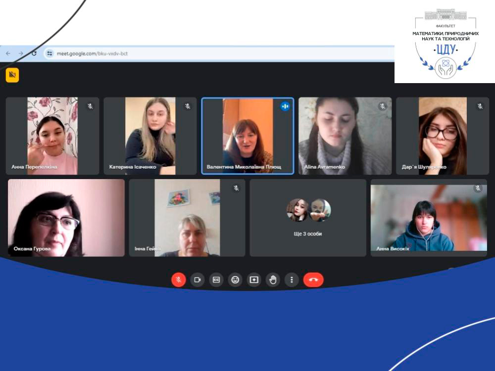 28 грудня 2023 року на факультеті математики, природничих наук та технологій відбулася онлайн зустріч студентів спеціальностей 014 Середня освіта (Природничі науки) та 014 Середня освіта (Біологія і здоров'я людини, Хімія) із практичним психологом психологічної служби ЦДУ ім. В. Винниченка Гуровою Оксаною Миколаївною. Студенти мали нагоду разом із фахівцем дослідити питання комунікації взагалі, та проаналізувати особливості спілкування з учнями під час виробничої (педагогічної) практики, які допоможуть створити ефективне та продуктивне навчальне середовище.