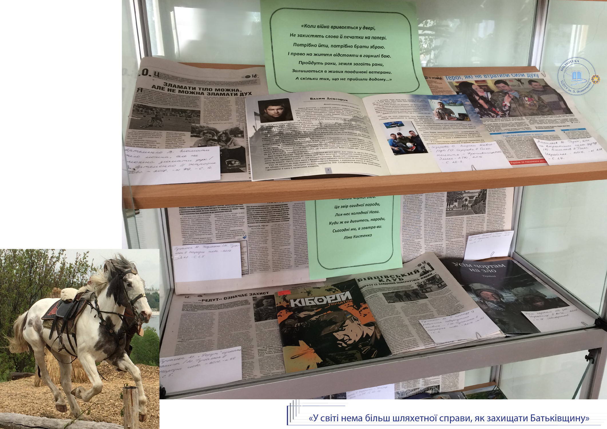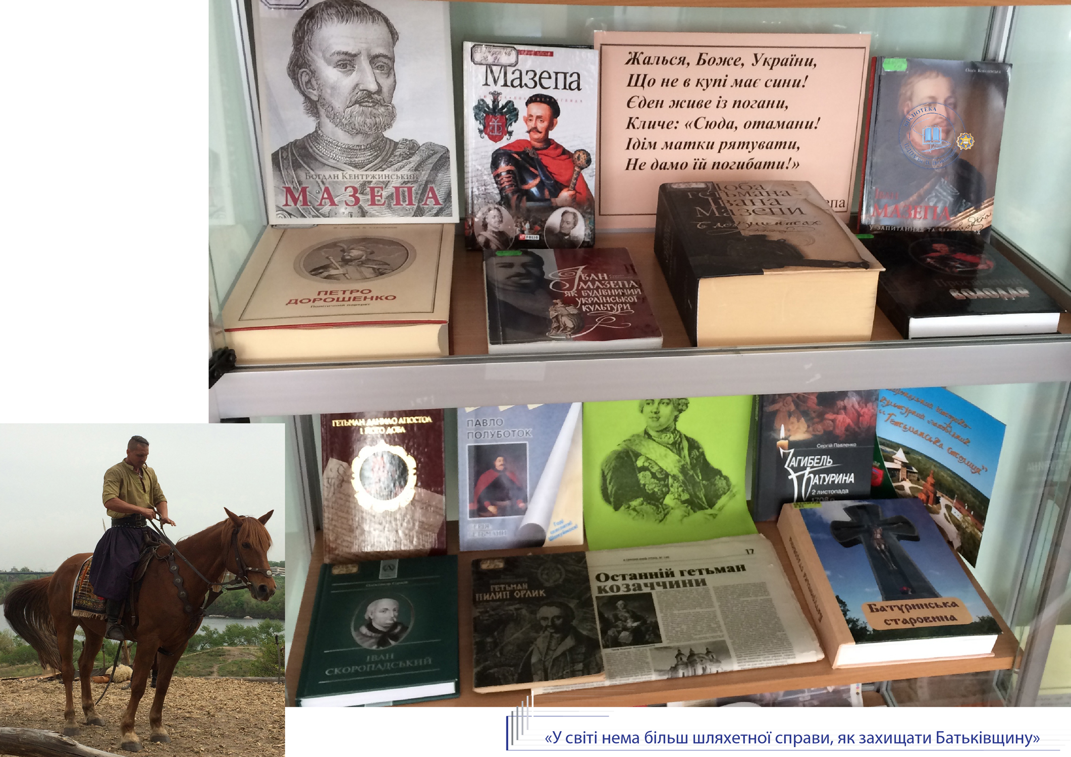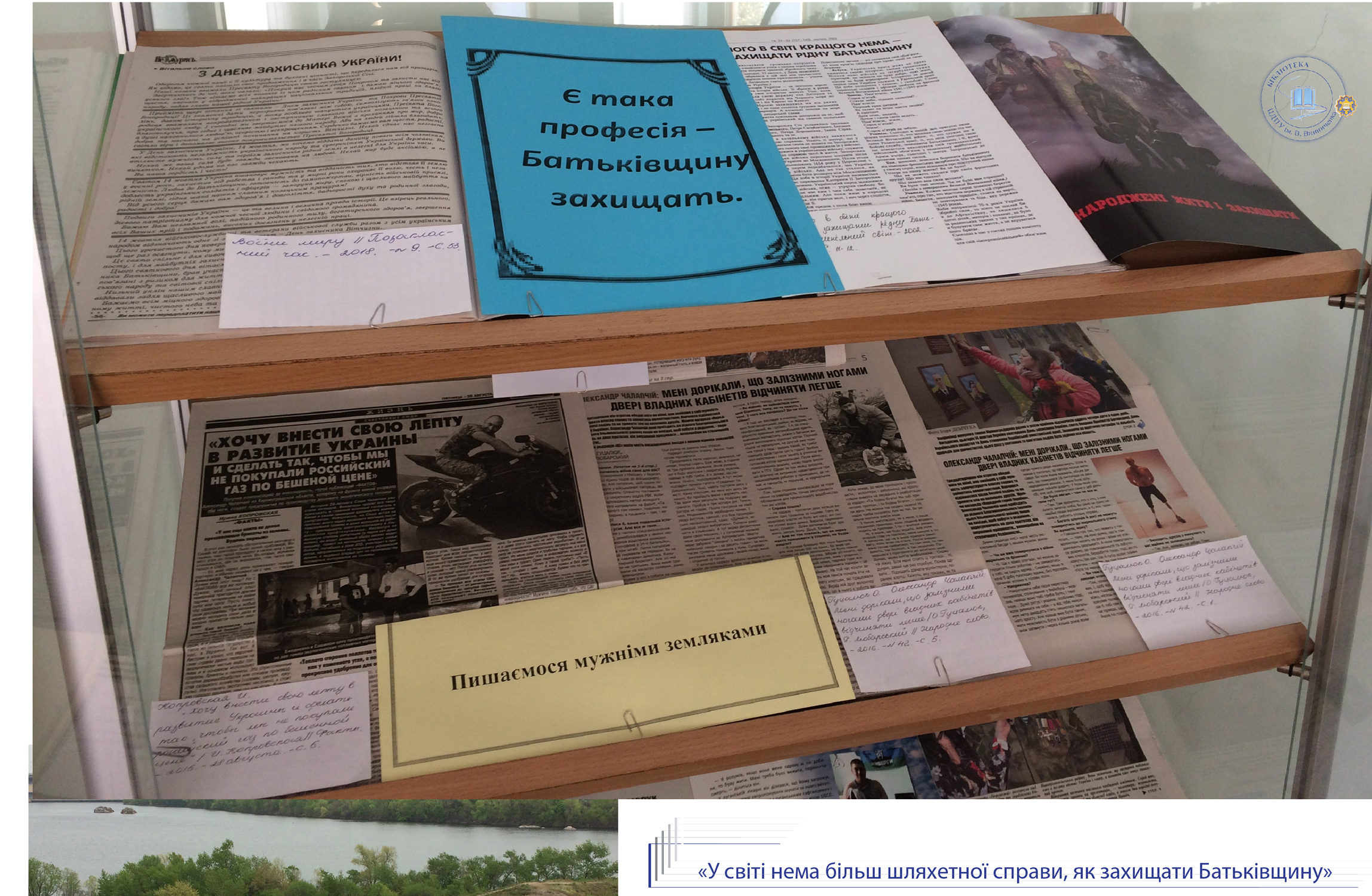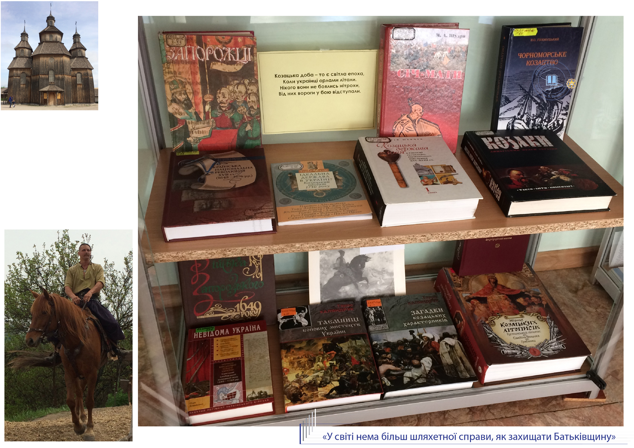 До Дня Захисника України, Дня козацтва та покровительки воїнів Покрови Пресвятої Богородиці універсальний читальний зал бібліотеки присвячує розгорнуту ілюстровану виставку «У світі нема більш шляхетної справи, як захищати Батьківщину». Книги з історії України, етнографії, мистецтвознавства висвітлюють сторінки славної доби козацтва, традиції вшанування нашими предками свята Покрови.