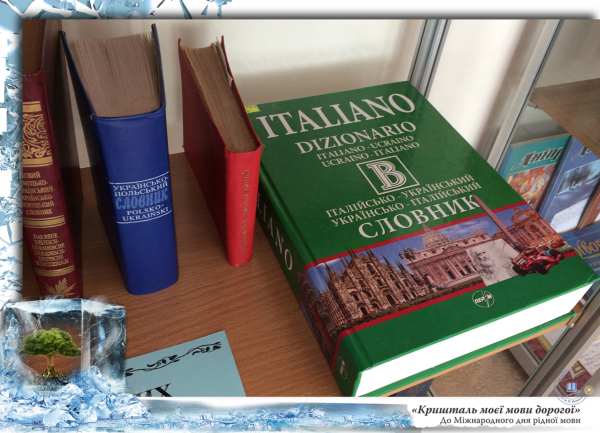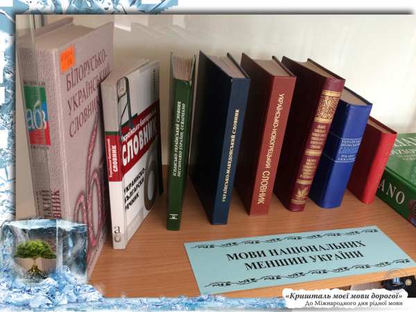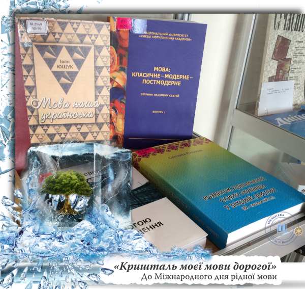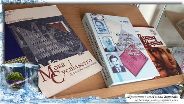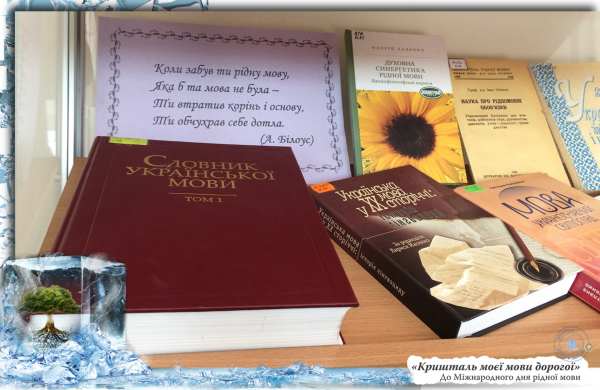 До Міжнародного дня рідної мови в читальному залі філологічних дисциплін з 19 лютого розгорнута книжкова виставка, яка висвітлює питання мовної ситуації в українських реаліях. 21 лютого – свято унікальне. Винятковість його в тому, що воно є і спільним, і водночас вузько родинним для людей, яких об'єднала спільна історична доля в єдиний моноліт – народ. Це свято є заповітним скарбом для кожного народу. Кожний народ – це своя неповторна культура, історія, традиції, спосіб життя. І, насамперед, мова.