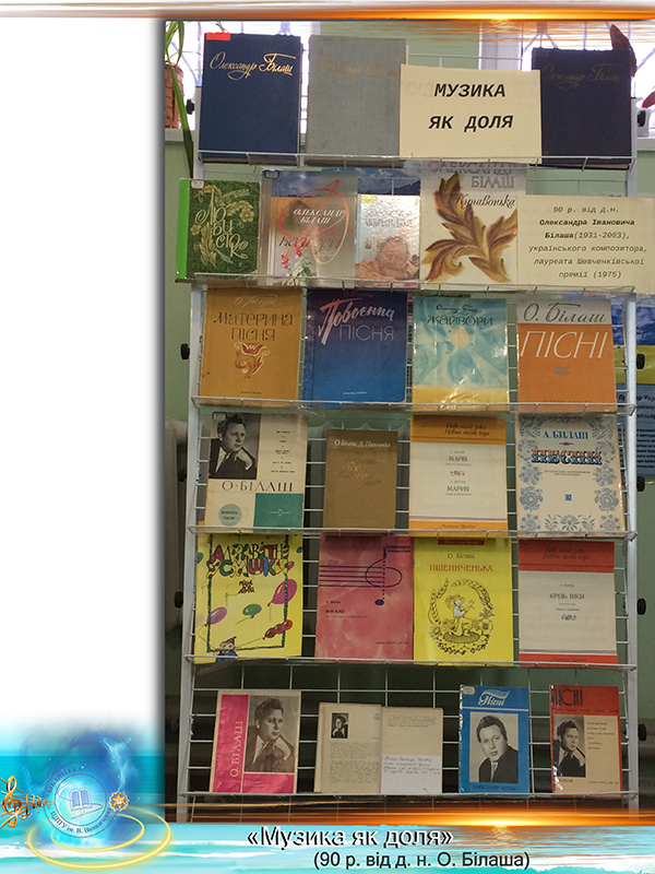 До 90-ї річниці від дня народження композитора на абонементі мистецького факультету експонується виставка «Музика як доля», на якій представлені твори автора, а також інформація про нього.