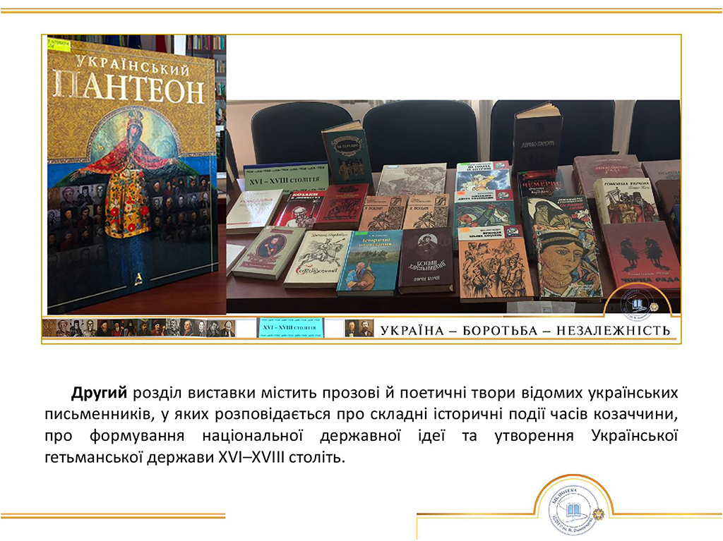 Мета виставки – спонукати читача дійти до першоджерел нашої української історії, до першооснови нашої державності й народності.