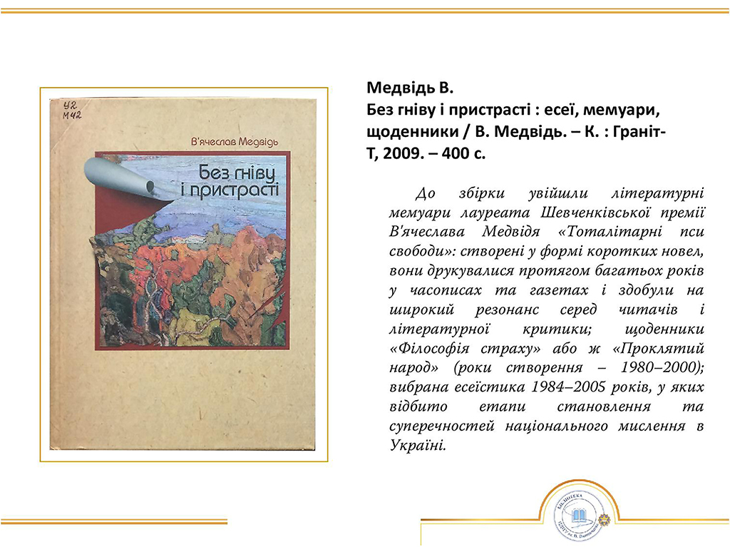 Виставка розрахована на широке коло читачів, які цікавляться національною історією і тисячолітньою традицією її передачі і відтворення у Слові!