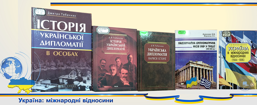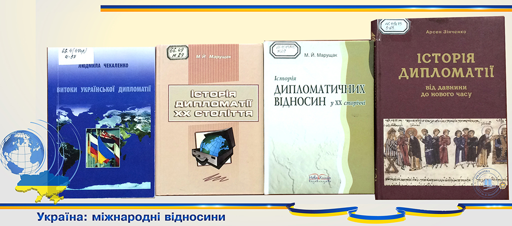 В рамках святкування 30-річчя Незалежності України співробітники бібліотеки продовжують цикл тематичних виставок. Вашій увазі представлено наступну рубрику «Україна – міжнародні відносини», яка акцентує на таких аспектах зовнішньополітичної діяльності нашої держави, як укладання міжнародних договорів, вектори зовнішньої політики, участь України в міжнародних організаціях (ООН, Парламентська асамблея Ради Європи), миротворчих операціях. Також на виставці представлені збірники документі, історія дипломатії та міжнародних відносин, дипломатичні енциклопедії, монографії, навчальні посібники.