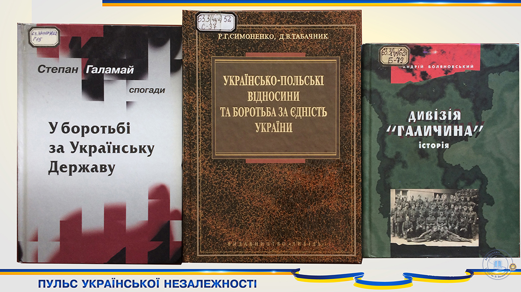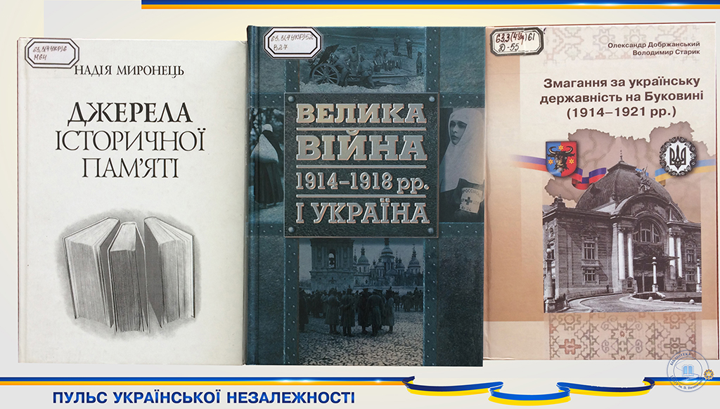 В рамках святкування 30-річчя незалежності України бібліотека презентує розділ історичної подорожі «Пульс української Незалежності». Представлені матеріали виставки є вікном у світ слави та болю, краси та звитяги наших предків, славної, нездоланно – незнищенної землі батьків наших.