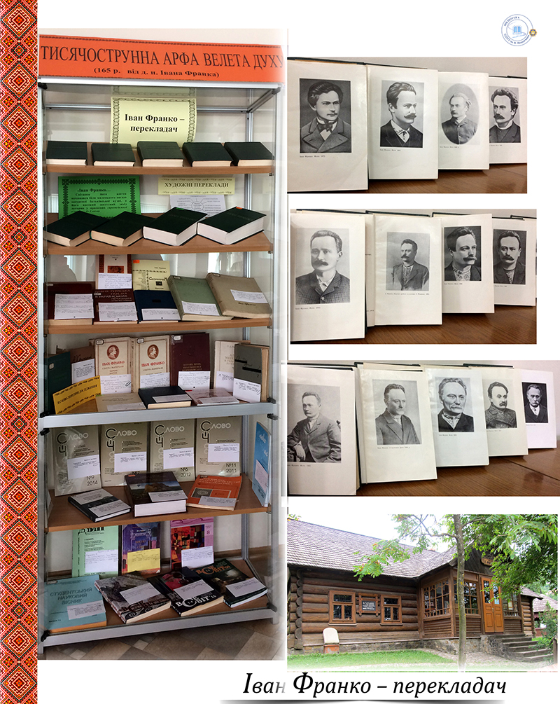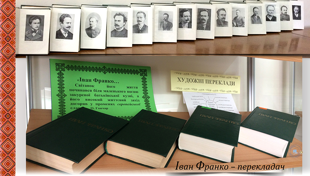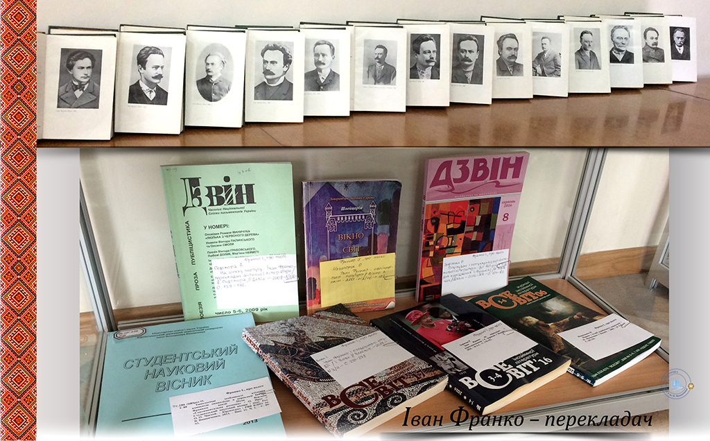 З нагоди 165-річчя від дня народження найвизначнішого представника української класичної літератури, самовідданого громадського діяча, глибокого мислителя і вченого в читальному залі філологічних дисциплін бібліотеки університету експонується книжкова виставка «Іван Франко – перекладач».