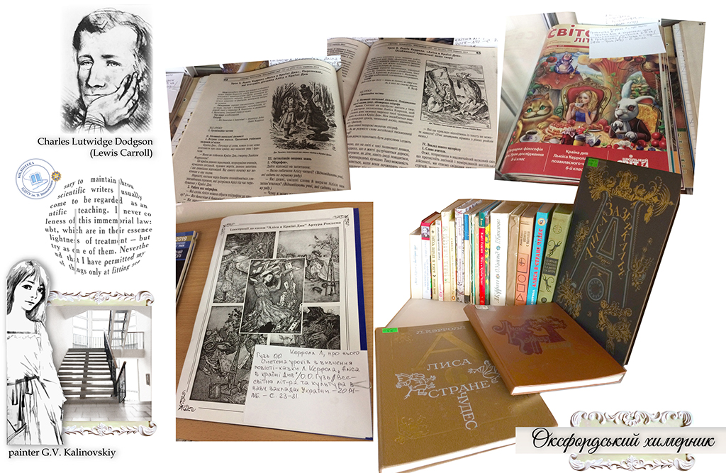 Читальний зал філологічних дисциплін запрошує на перегляд виставки, яка присвячена відомому англійському мрійнику, парадоксалісту, гумористу, професору математику й філософу Льюїсу Керроллу. Його 190-річний ювілей – це 160-річний ювілей його Аліси.