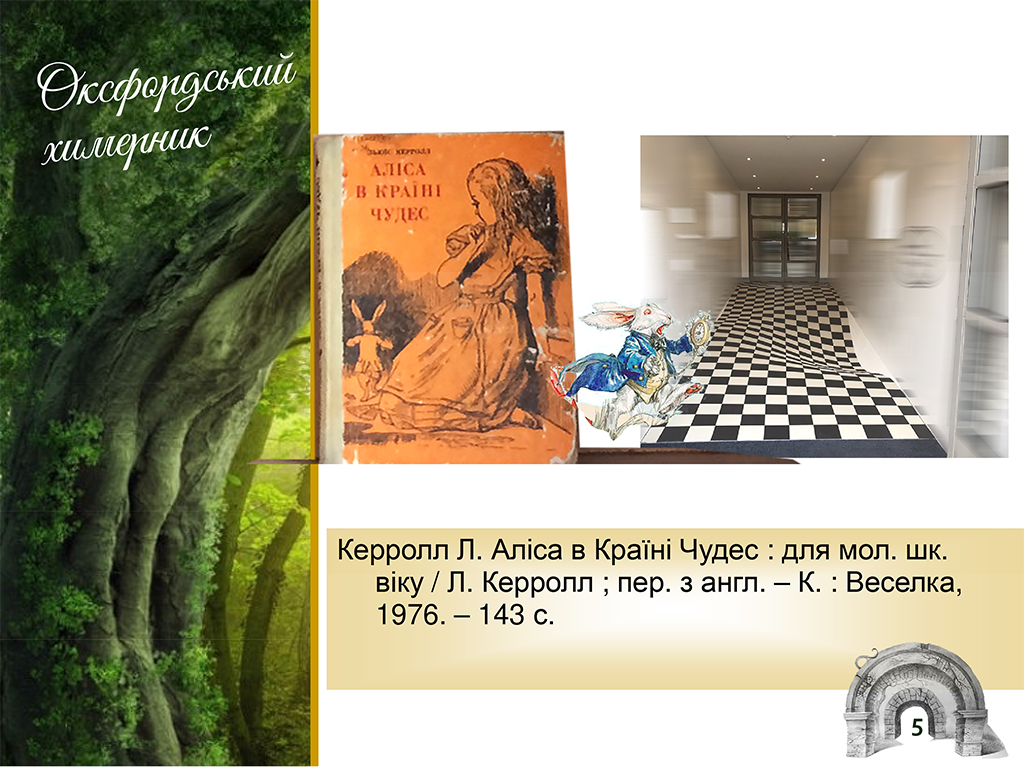 Кількість й різноманіття видань вершинного твору Льюїса Керролла, – вперше зібрані з загального фонду бібліотеки, – здивує й захопить навіть книжкових гурманів, на яких чекають видання мовою оригіналу.