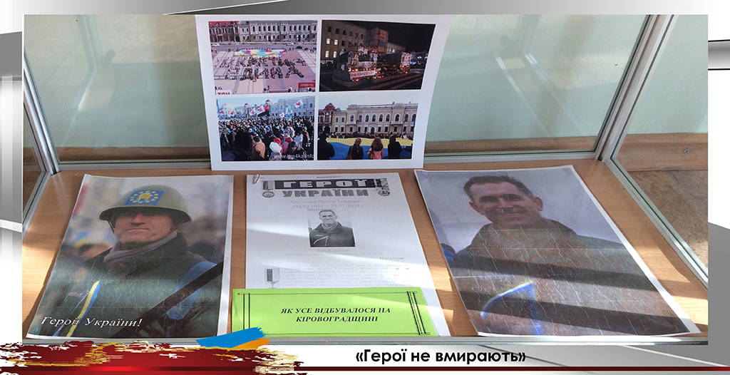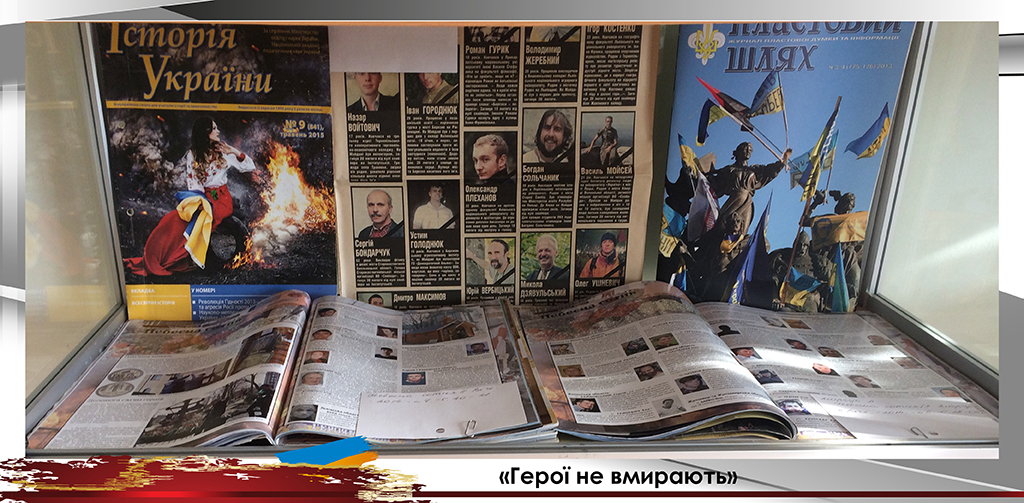 До Дня вшанування пам’яті Героїв Небесної Сотні універсальний читальний зал підготував виставку «Герої не вмирають». Цією виставкою ми вшановуємо подвиг учасників Революції Гідності, які поклали життя за волю України, за свободу та гідне життя свого народу. Цих героїв назвали Небесною Сотнею.