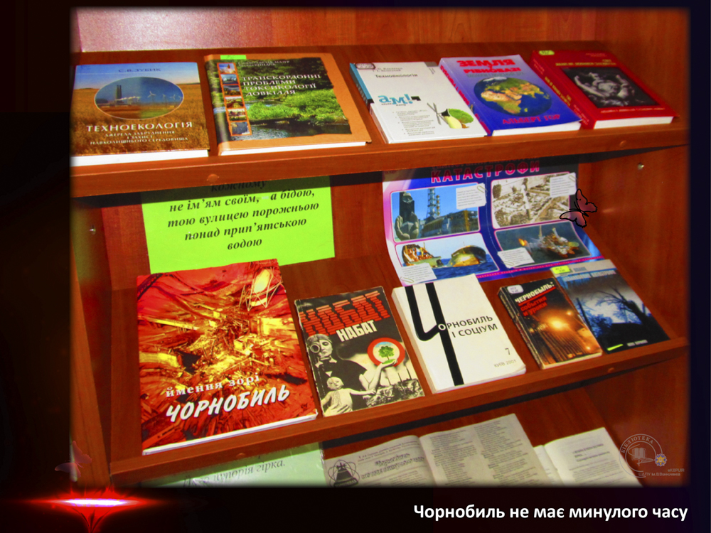 До вшанування трагедії на Чорнобильській АЕС бібліотека презентує ряд виставок.