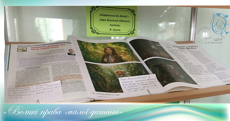 До Міжнародного дня захисту дітей універсальний читальний зал пропонує вашій увазі виставку «Великі права малої дитини». Рішення про відзначення Міжнародного дня захисту дітей 1 червня затвердила Міжнародна демократична федерація жінок у листопаді 1949 року.