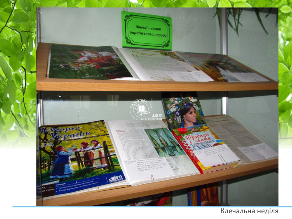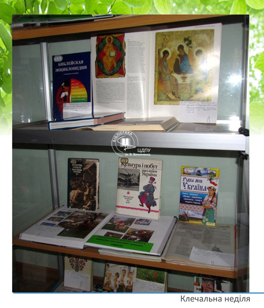 Універсальний читальний зал також долучається до святкування Трійці і пропонує вашій увазі виставку «Клечальна неділя». На ній представлені книги, періодичні та довідкові видання, в яких висвітлено звичаї, повір’я, обряди, свята нашого народу.