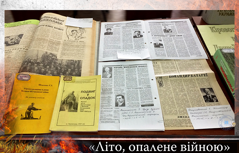 Безпосередню участь у боротьбі за волю, рідний край узяли і представники степової Кіровоградщини, їх безсмертний подвиг возвеличують як історично-документальні матеріали, так і нариси періодичних видань та наукові дослідження краєзнавців у рубриці «Кіровоградщина в роки Другої світової війни».