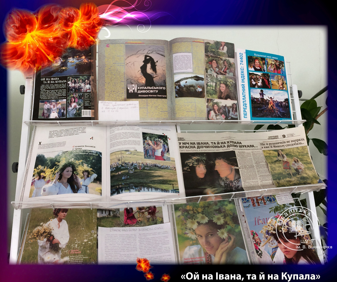 До Дня Івана Купала (7 липня) універсальний читальний зал приурочує виставку «Ой на Івана, та й на Купала». Усіх бажаючих запрошуємо поринути в чарівний світ магії та дивовижних дійств.