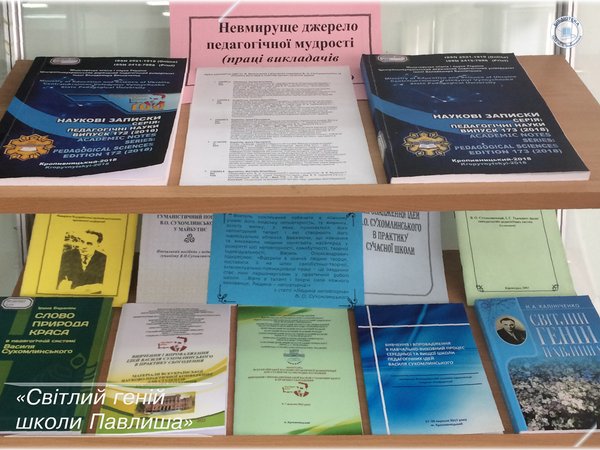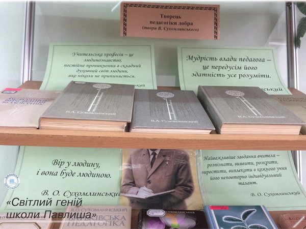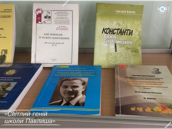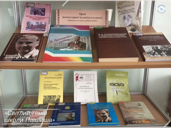 З нагоди Дня народження корифея української та світової педагогіки Василя Сухомлинського бібліотека університету презентує розгорнуту книжкову виставку «Світлий геній школи Павлиша».