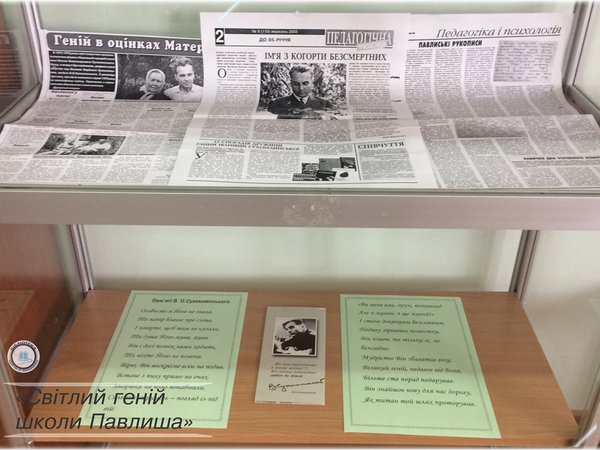 Віддаючи нині велику шану світлій пам’яті геніального педагога XX століття ми представили його творчу спадщину та праці викладачів і студентів університету, присвячених творчості В.О.Сухомлинського.