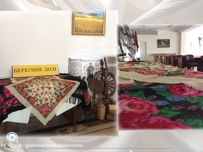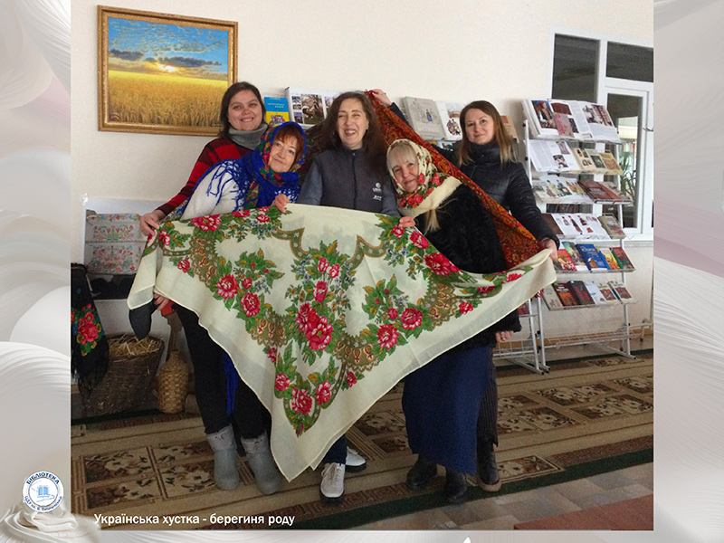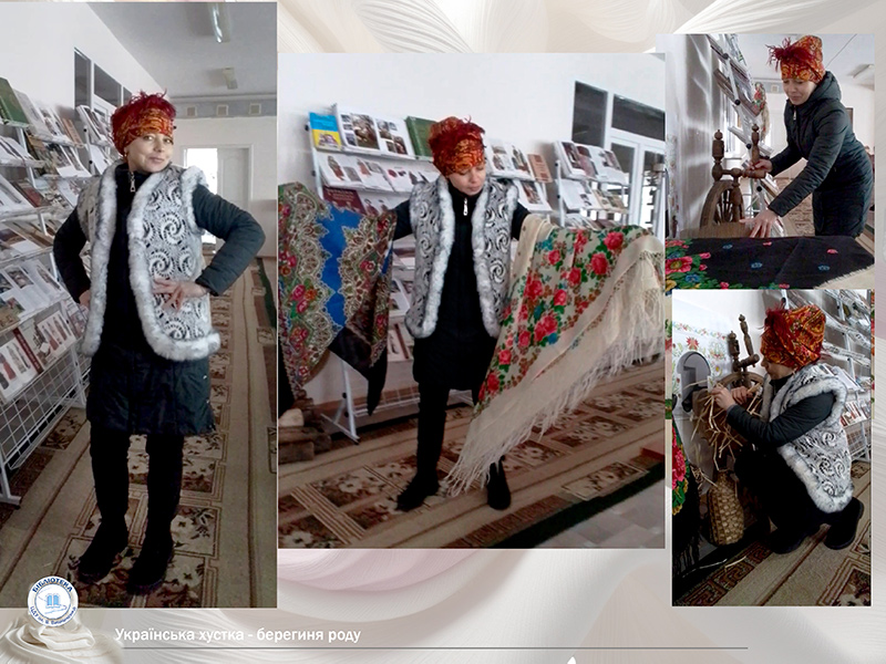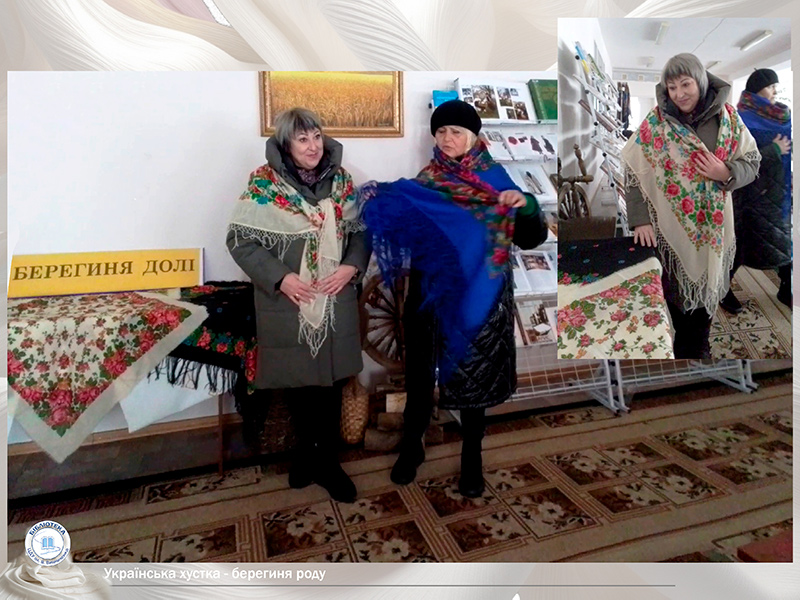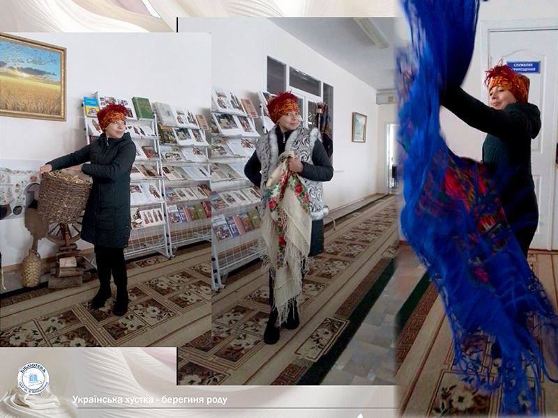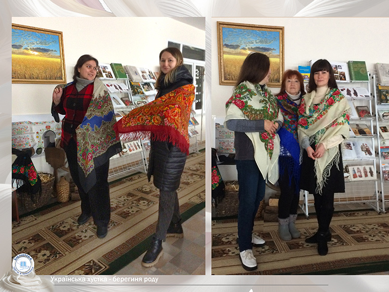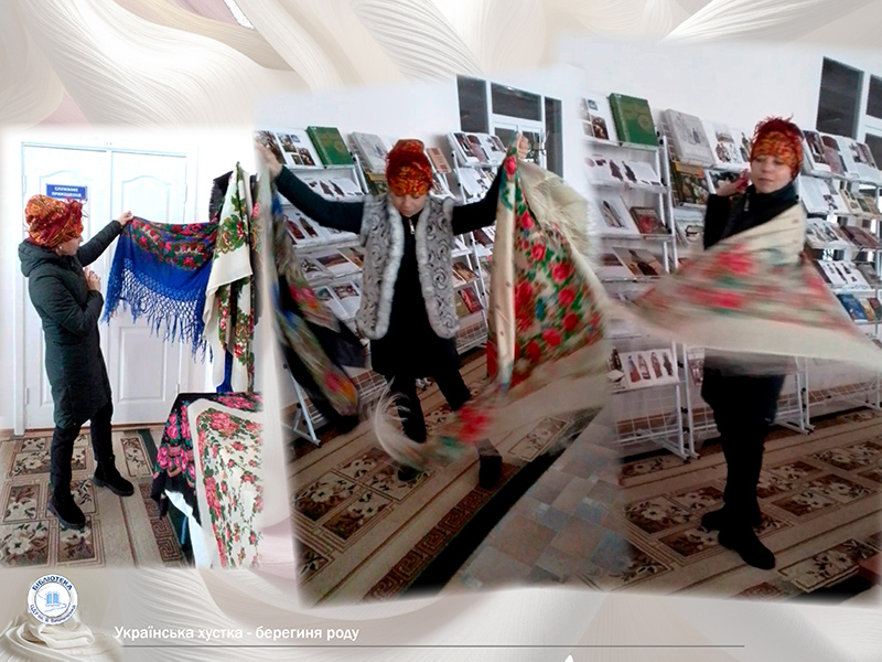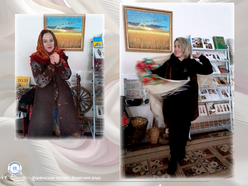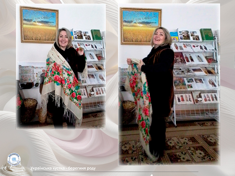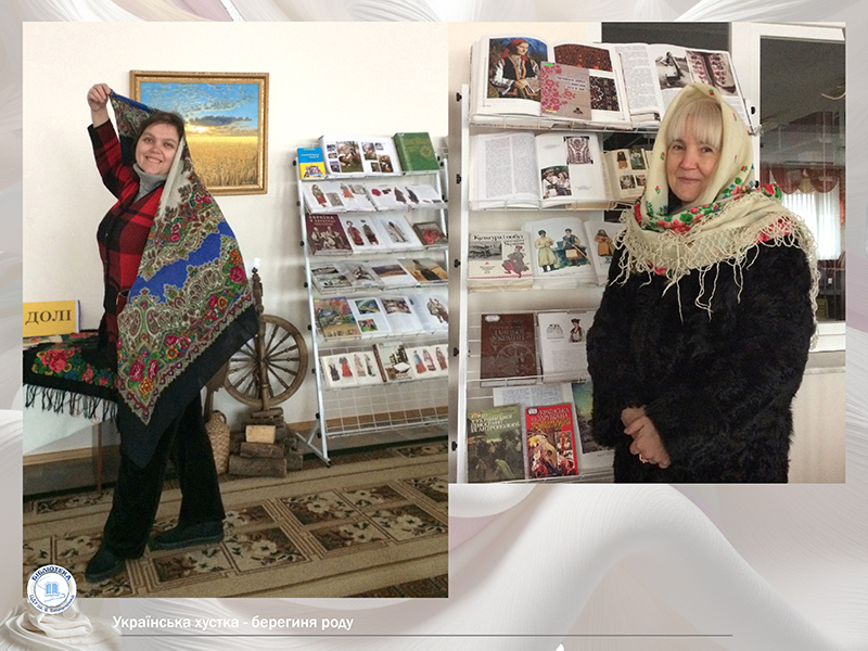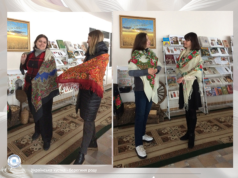 Хустки різних орнаментів та кольорів створили атмосферу єдності й поваги до народних звичаїв, надихнувши учасників пишатися своїм корінням. Також до уваги користувачів бібліотеки запропонована розгорнута книжкова виставка "Берегиня роду". Матеріали виставки висвітлюють визначення обрядового значення української хустки, усвідомлення близькості народних традицій до сучасного життя, поглиблення знань про українську хустку. Адже здавна в українських родинах оберегом, символом любові та злагоди була українська хустка.