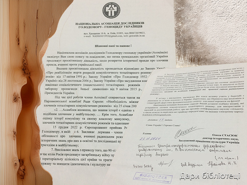 - Національній асоціації дослідників Голодомору - геноциду українців в Україні за підбірку книг, що викривають злочини комуністичного режиму.