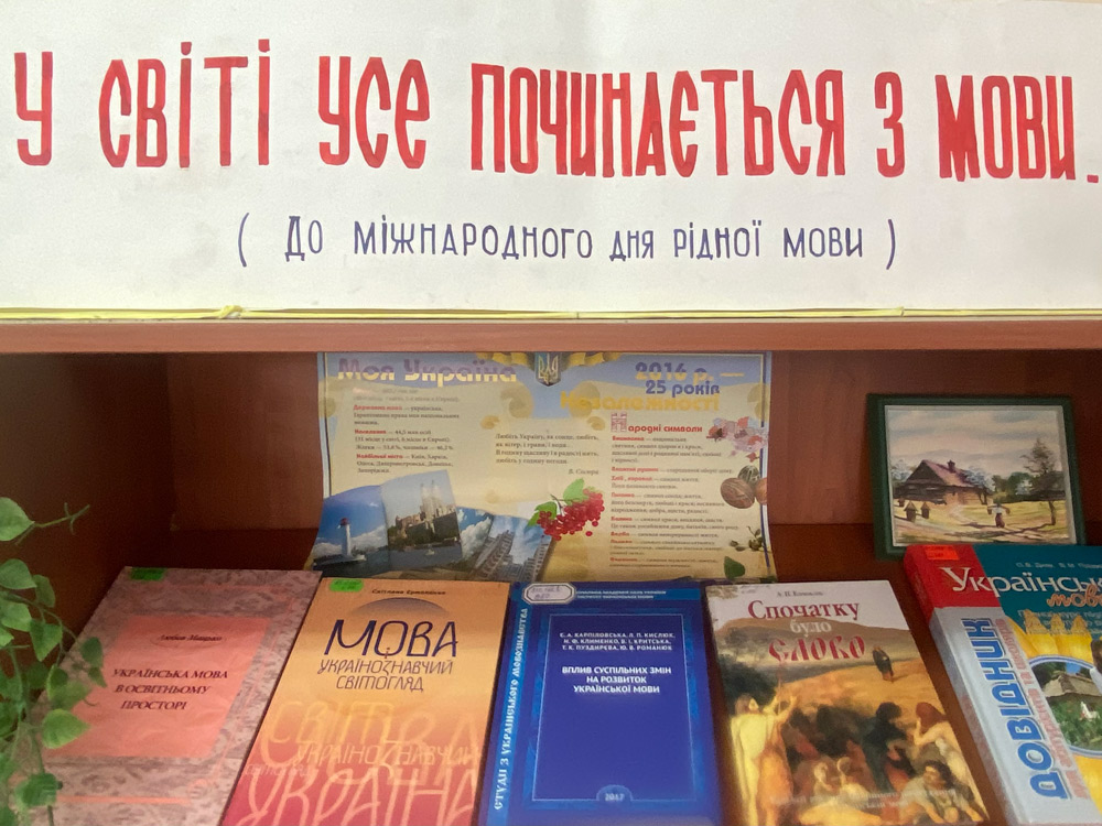Саме тому, бібліотекар відділу мови та мовознавства, розгорнула книжкову виставку "У світі усе починається з мови" до дня рідної мови. Виставка розкриває перед читачами бібліотеки історію походження української мови, непростий шлях розвитку та всю її красу у сьогоденні.