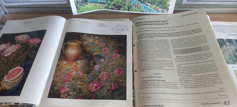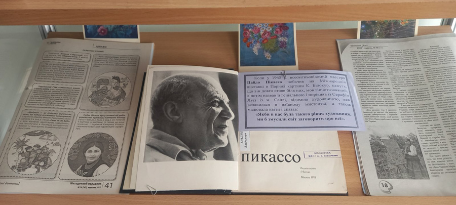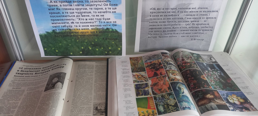 До Дня української жінки бібліотека презентує ілюстровану книжкову виставку «Світло душі Катерини Білокур», присвячену видатній українській художниці, майстрині народного декоративного живопису, яскравій представниці «наївного мистецтва» Катерині Василівні Білокур.