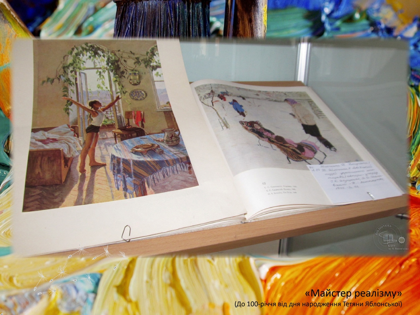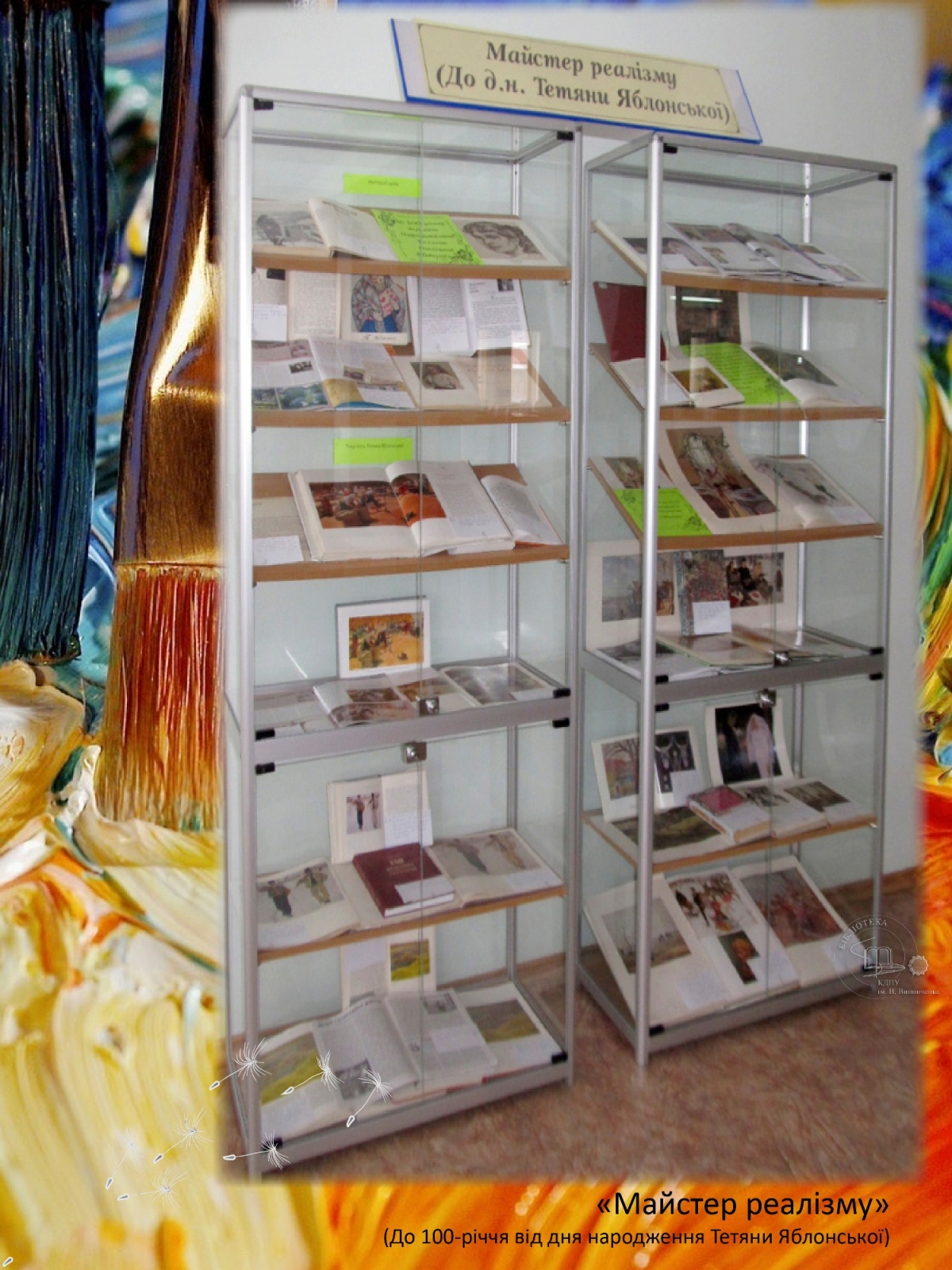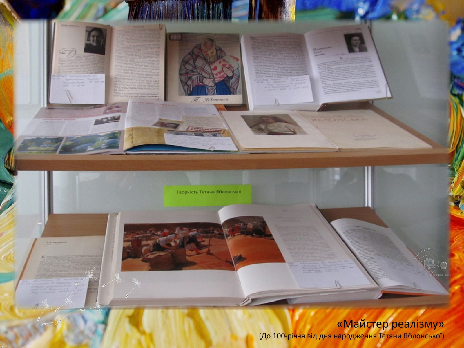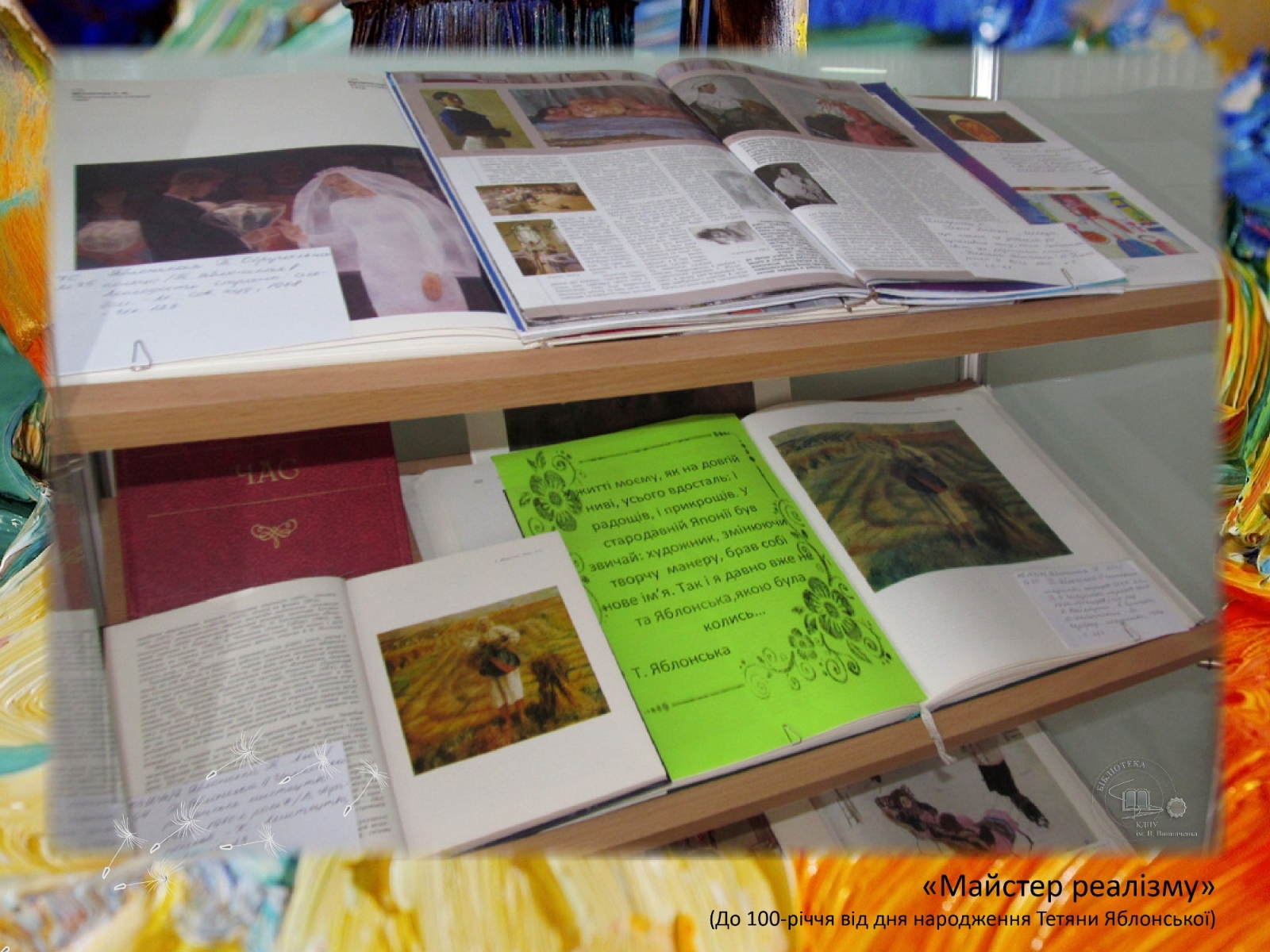 Універсальний читальний зал пропонує вашій увазі виставку «Майстер реалізму». В історії українського мистецтва є такі особистості, творчий шлях яких стає своєрідною віхою неперевершеної майстерності, безмежної любові, громадської мужності. Саме такою особистістю була українська художниця Тетяна Яблонська.