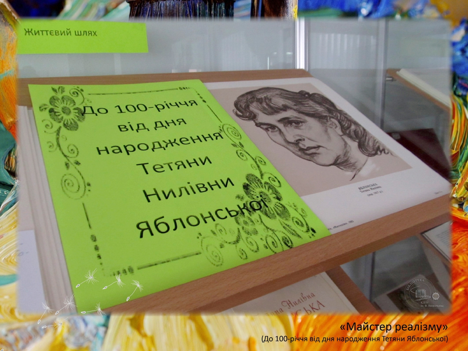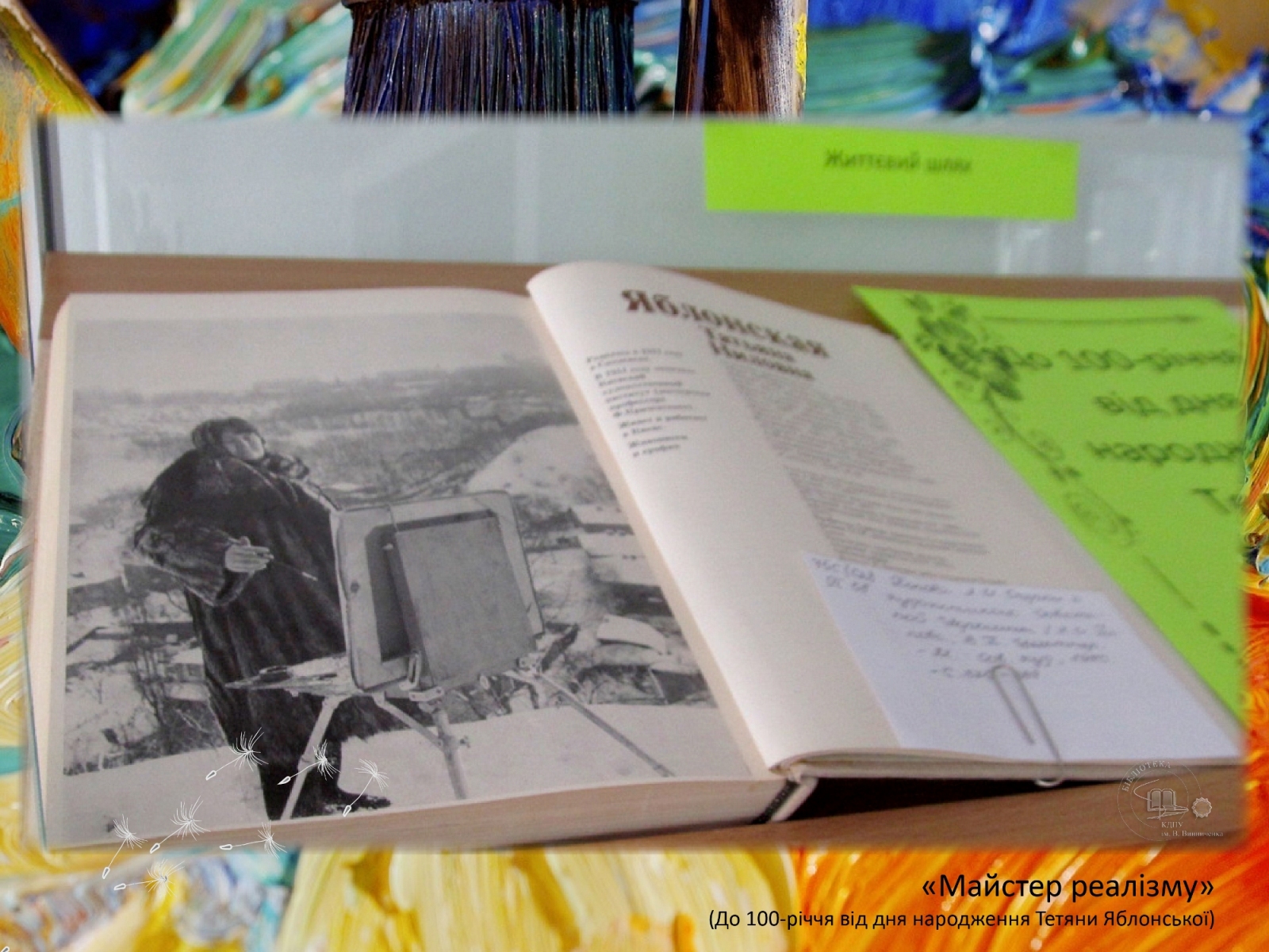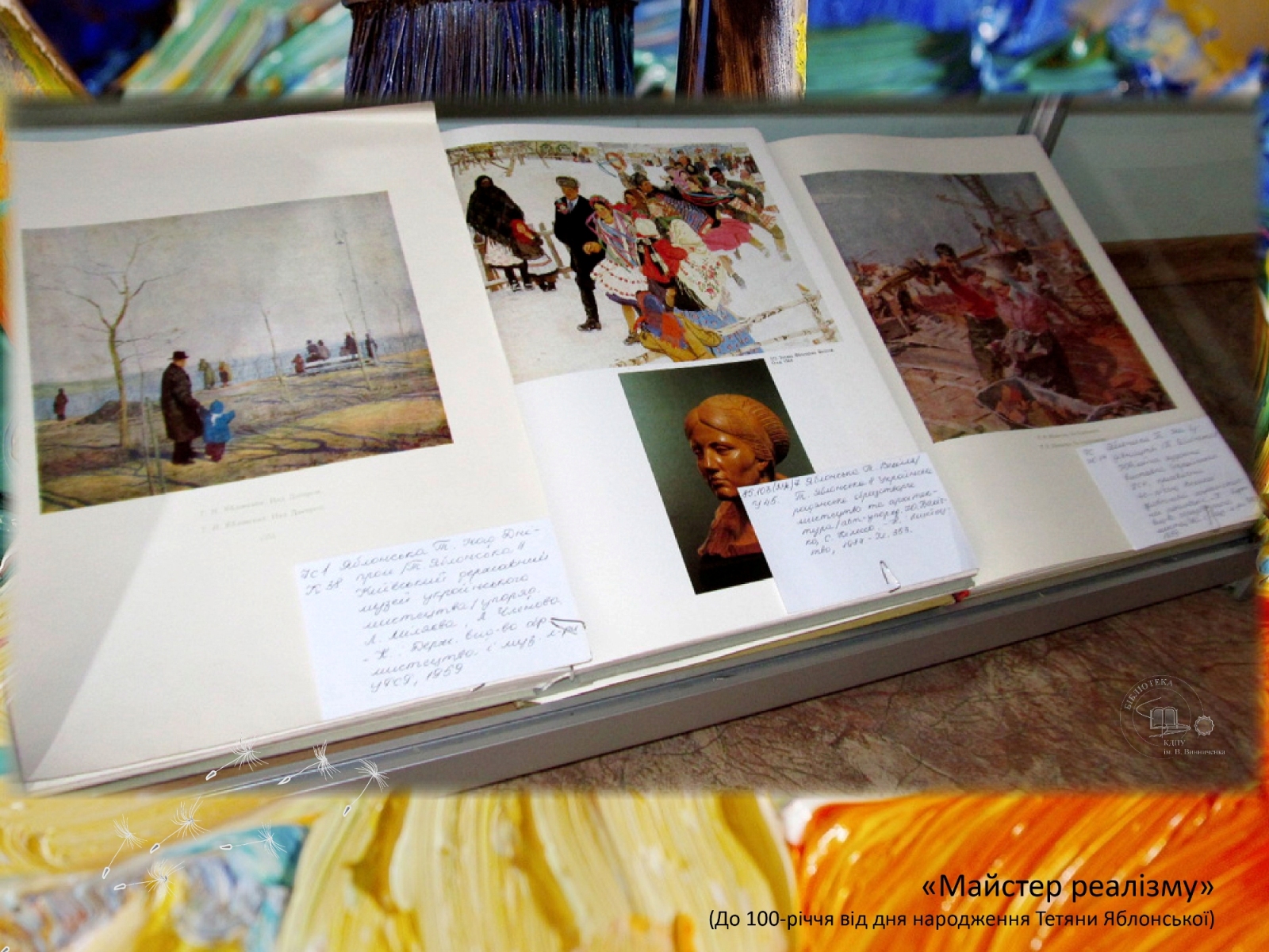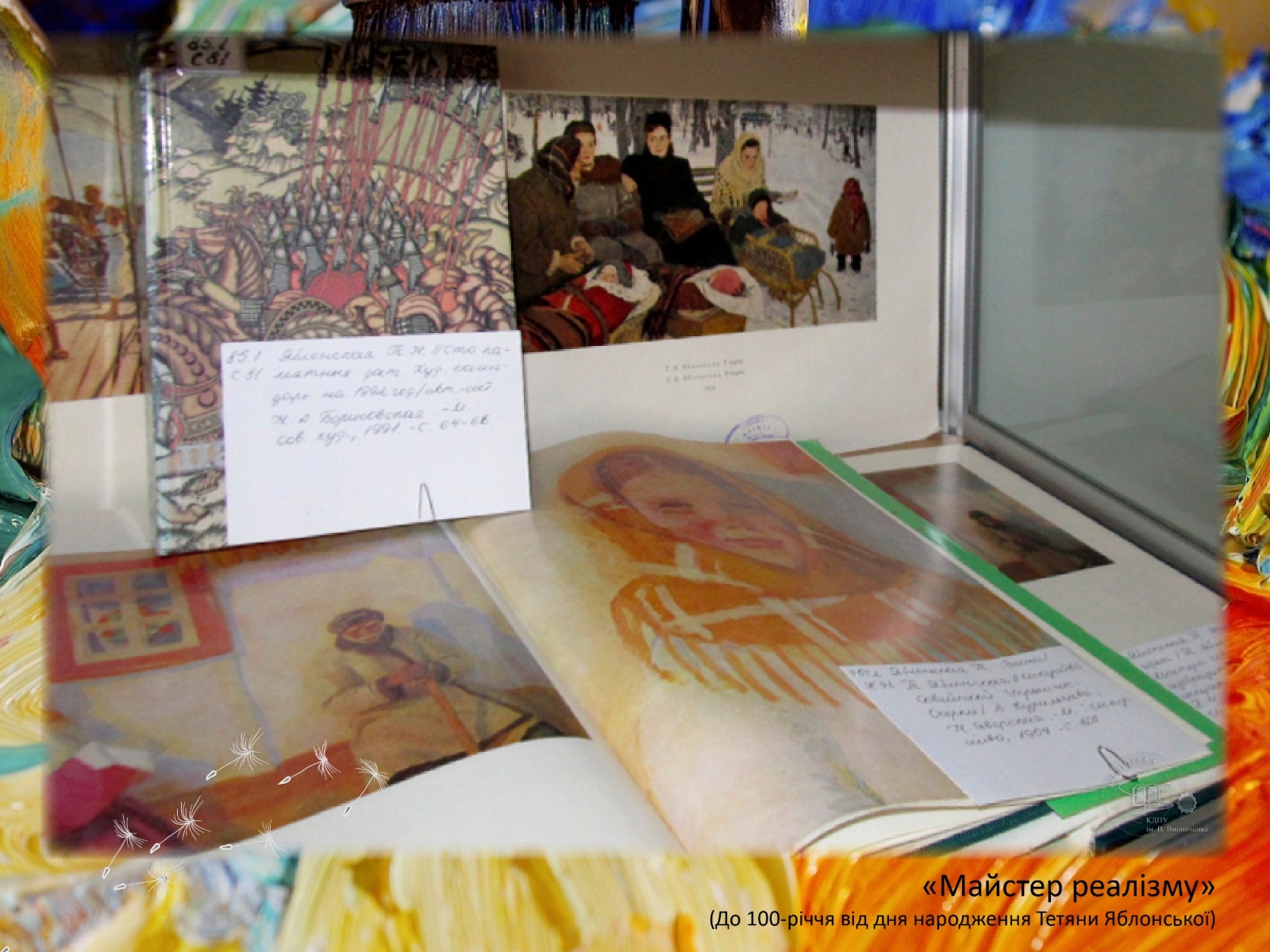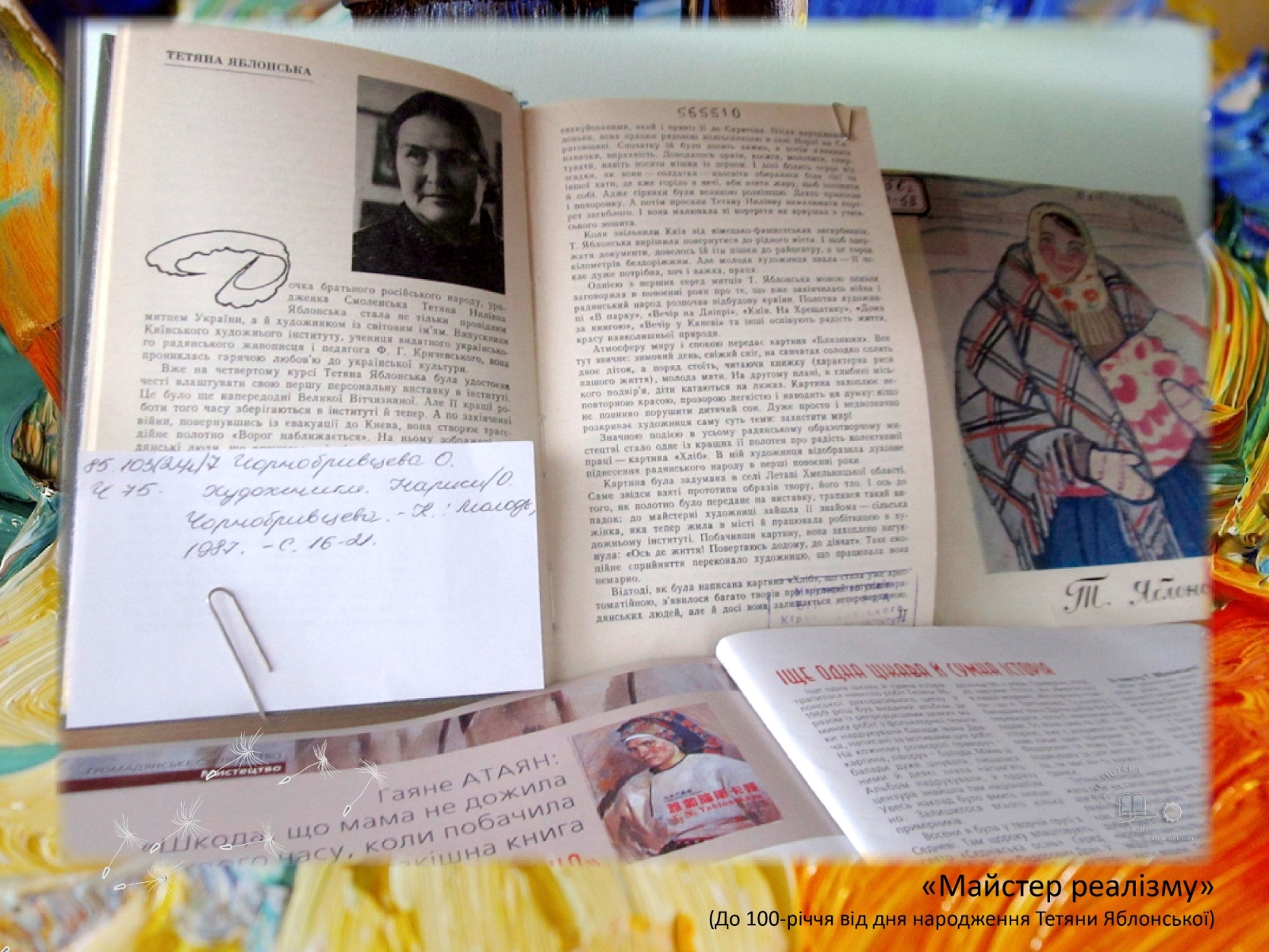 Універсальний читальний зал пропонує вашій увазі виставку «Майстер реалізму». В історії українського мистецтва є такі особистості, творчий шлях яких стає своєрідною віхою неперевершеної майстерності, безмежної любові, громадської мужності. Саме такою особистістю була українська художниця Тетяна Яблонська.
