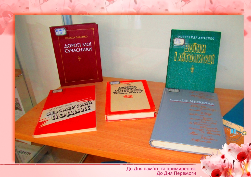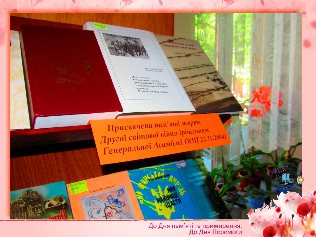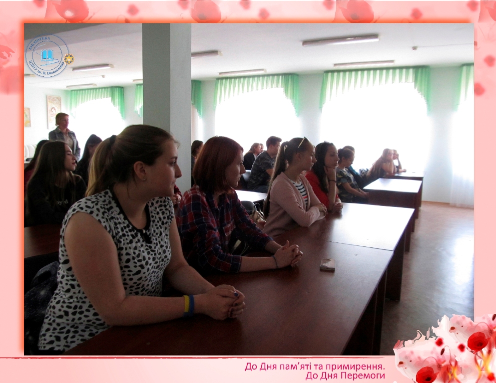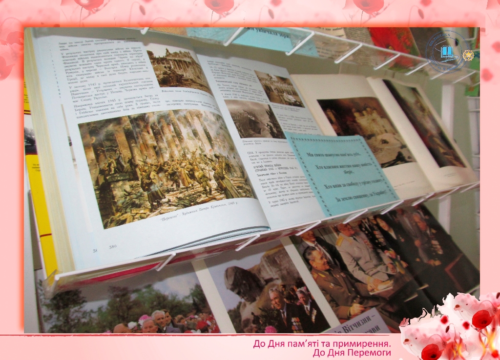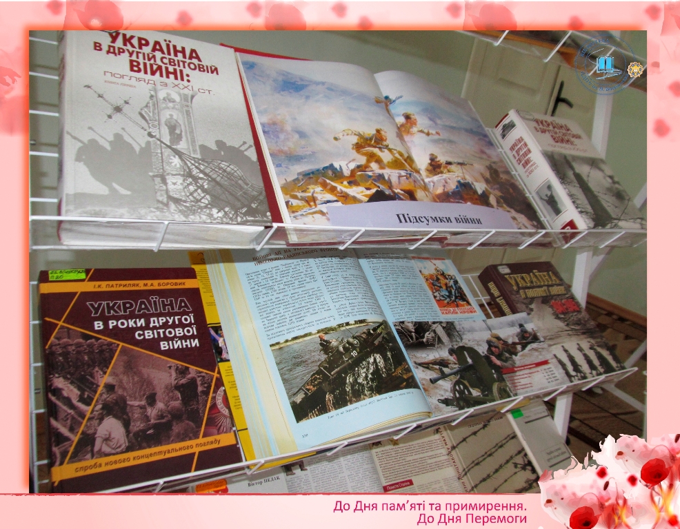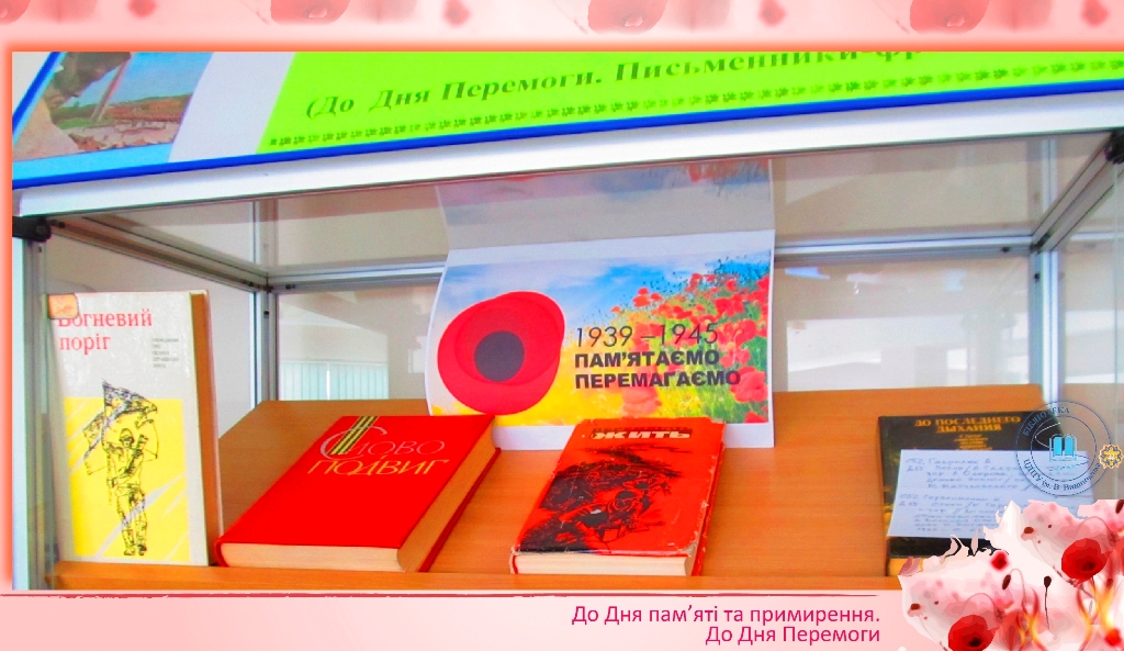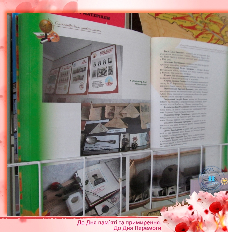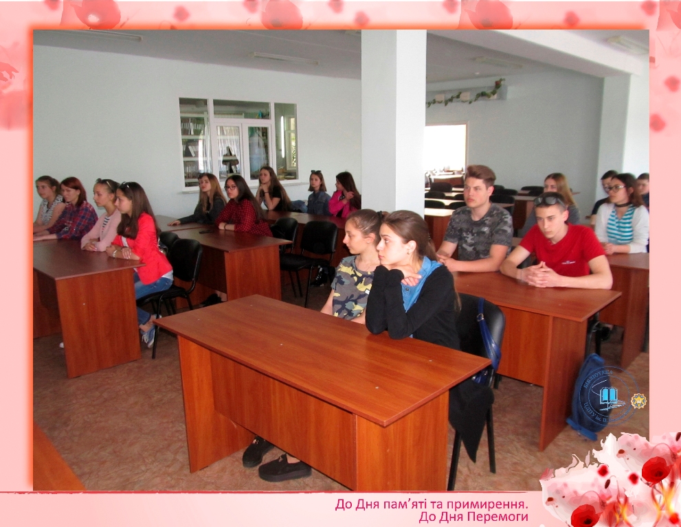 З нагоди Дня пам’яті і примирення та Дня Перемоги над нацизмом у Другій світовій війні бібліотека Кіровоградського державного педагогічного університету імені В. Винниченка присвятила низку заходів. Бібліотекарі читальних залів та абонементів для учнів ліцею провели розгорнутий огляд книжкових виставок: «День пам’яті і примирення», «Заради життя на Землі», «Кіровоградщина у роки Другої світової війни», «Слово і подвиг».