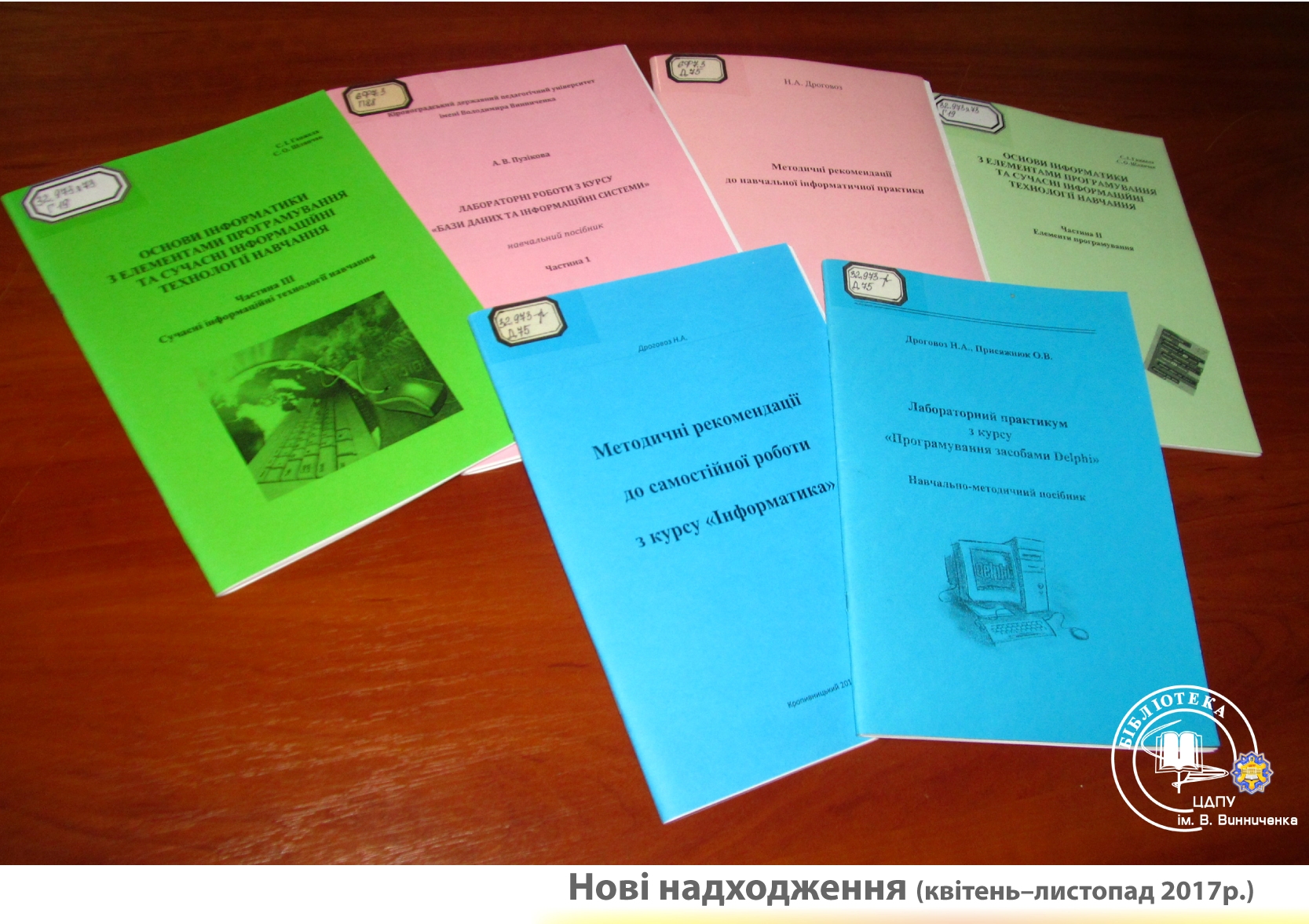 Запрушуємо Вас, шановний читач, на тиждень ПЕРЕГЛЯДУ НОВОЇ ЛІТЕРАТУРИ, який проводитиметься з 6 по 11 листопада 2017 року.