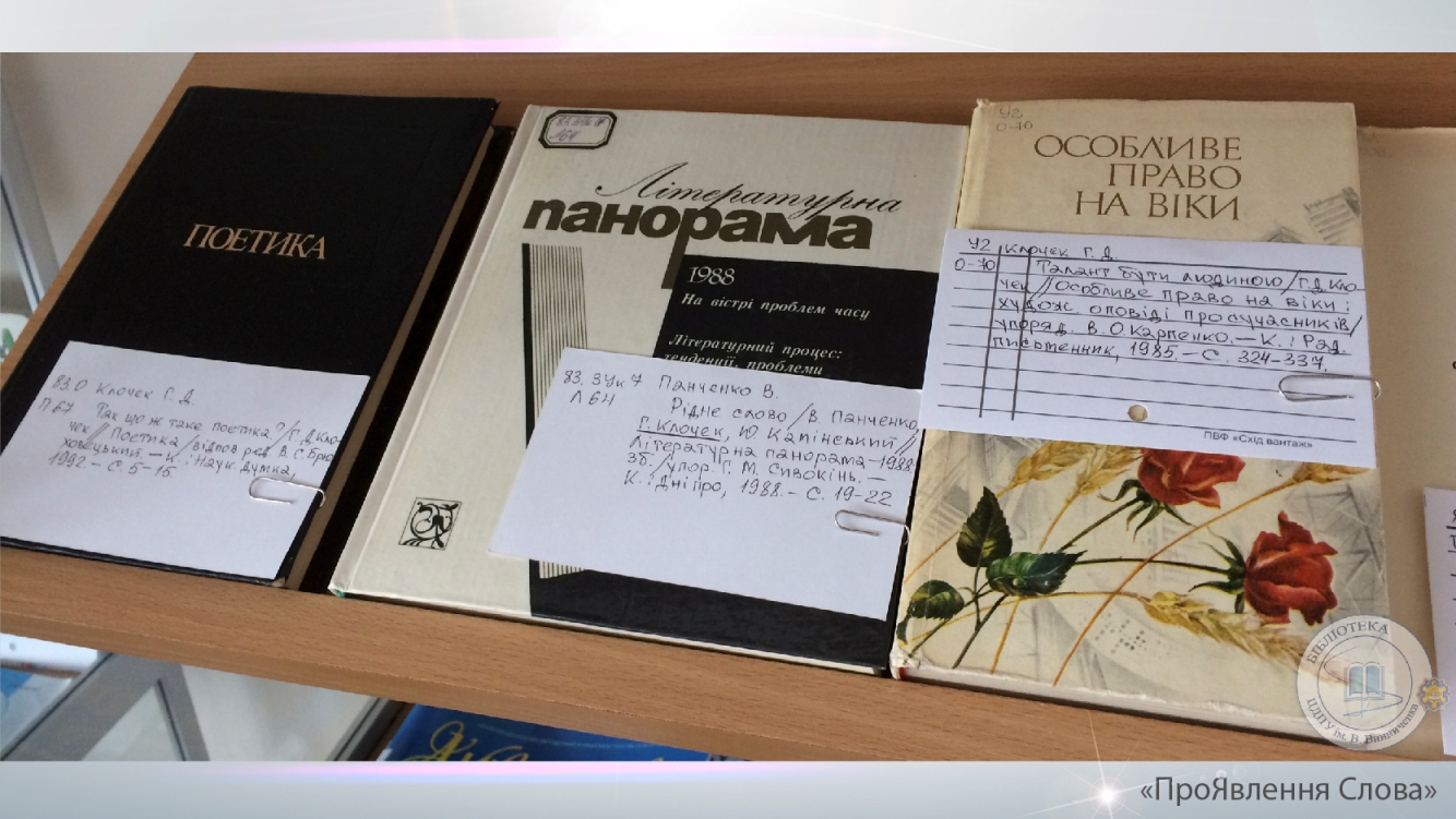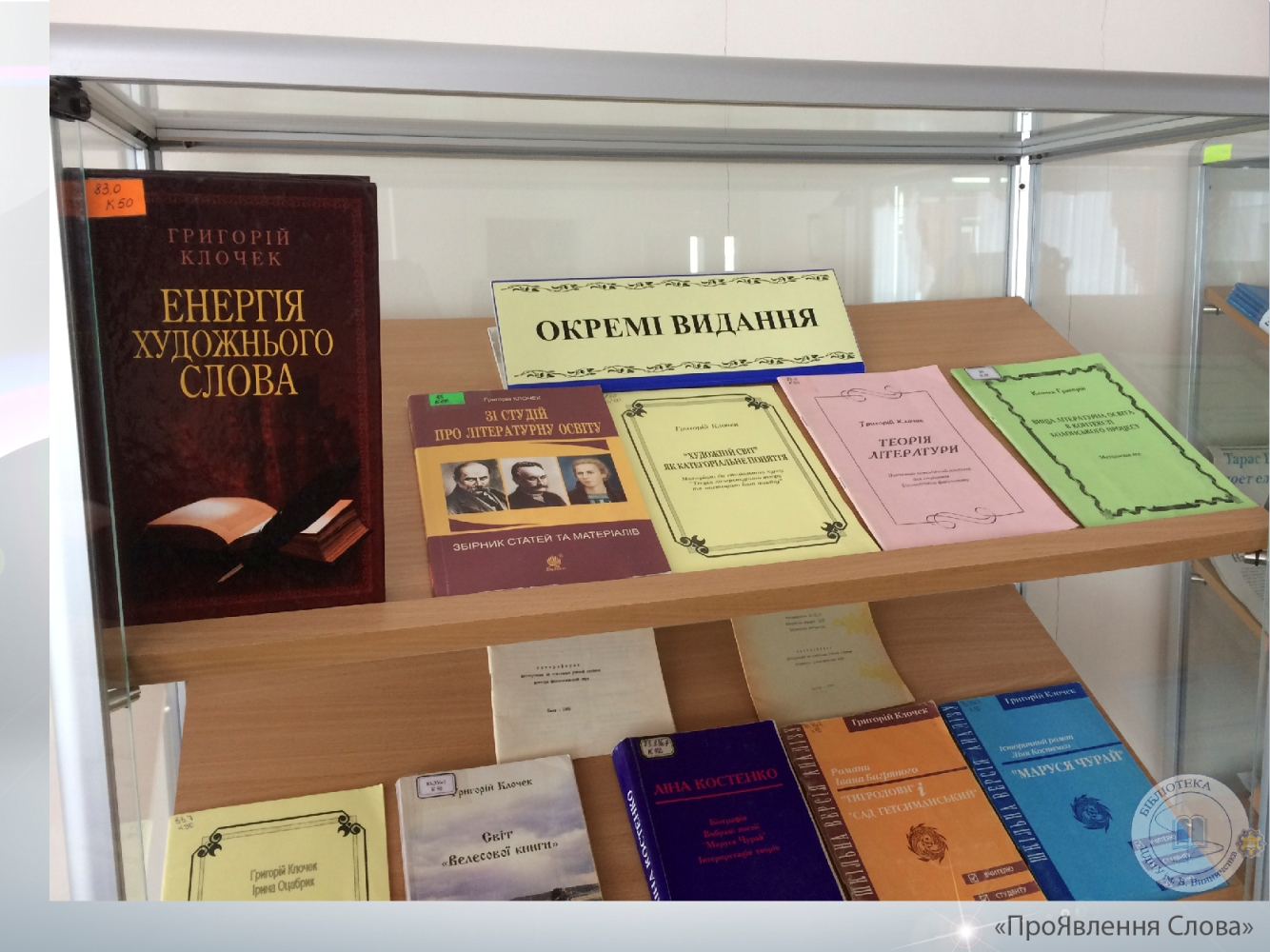 До ювілею доктора філологічних наук, професора, академіка АН ВШ України, члена Спілки письменників України, лауреата Фонду Тараса Шевченка 2017 року Григорія Дмитровича Клочека в читальному залі для науковців бібліотеки університету з 1 березня розгорнута виставка-вшанування.
