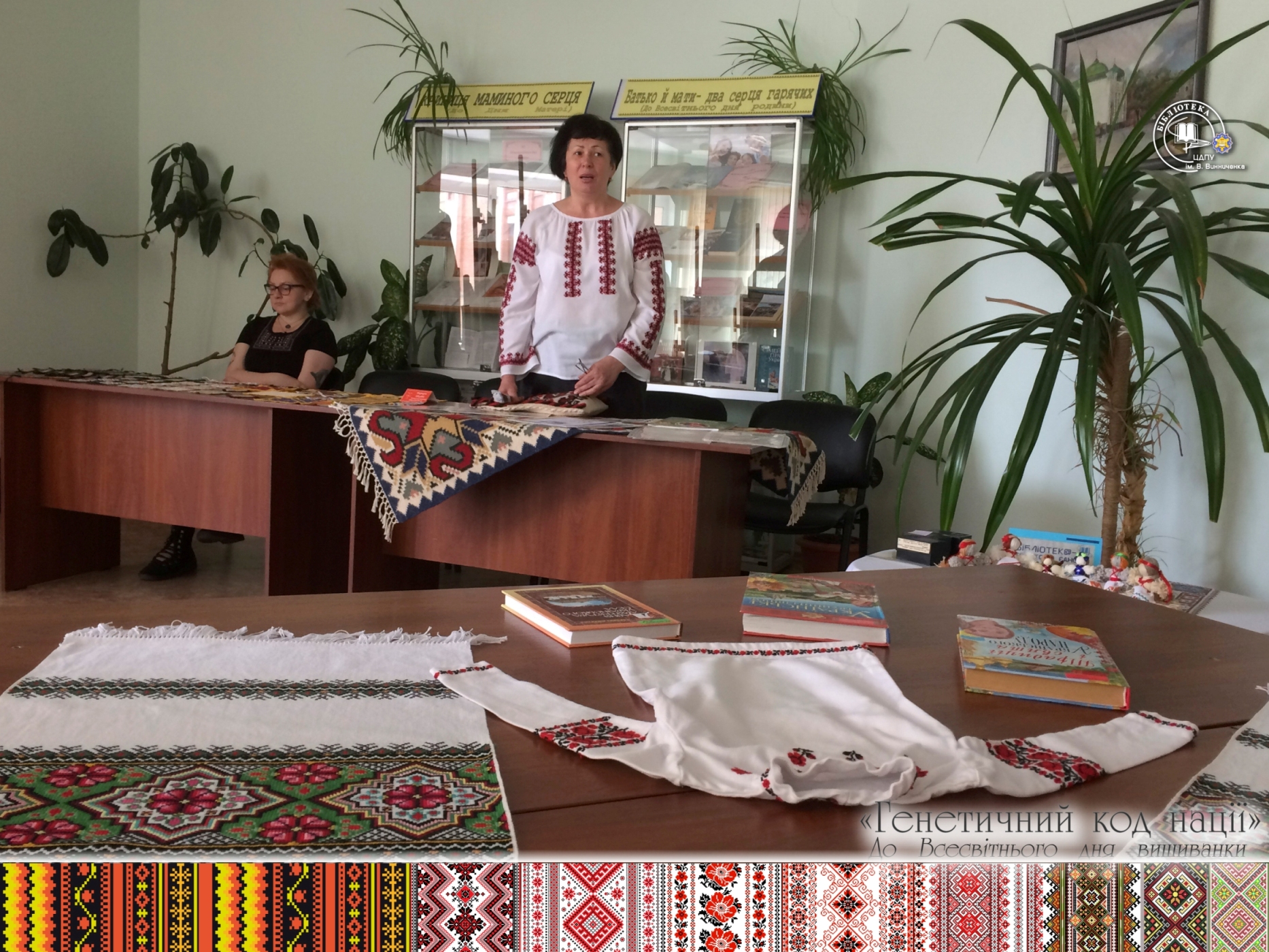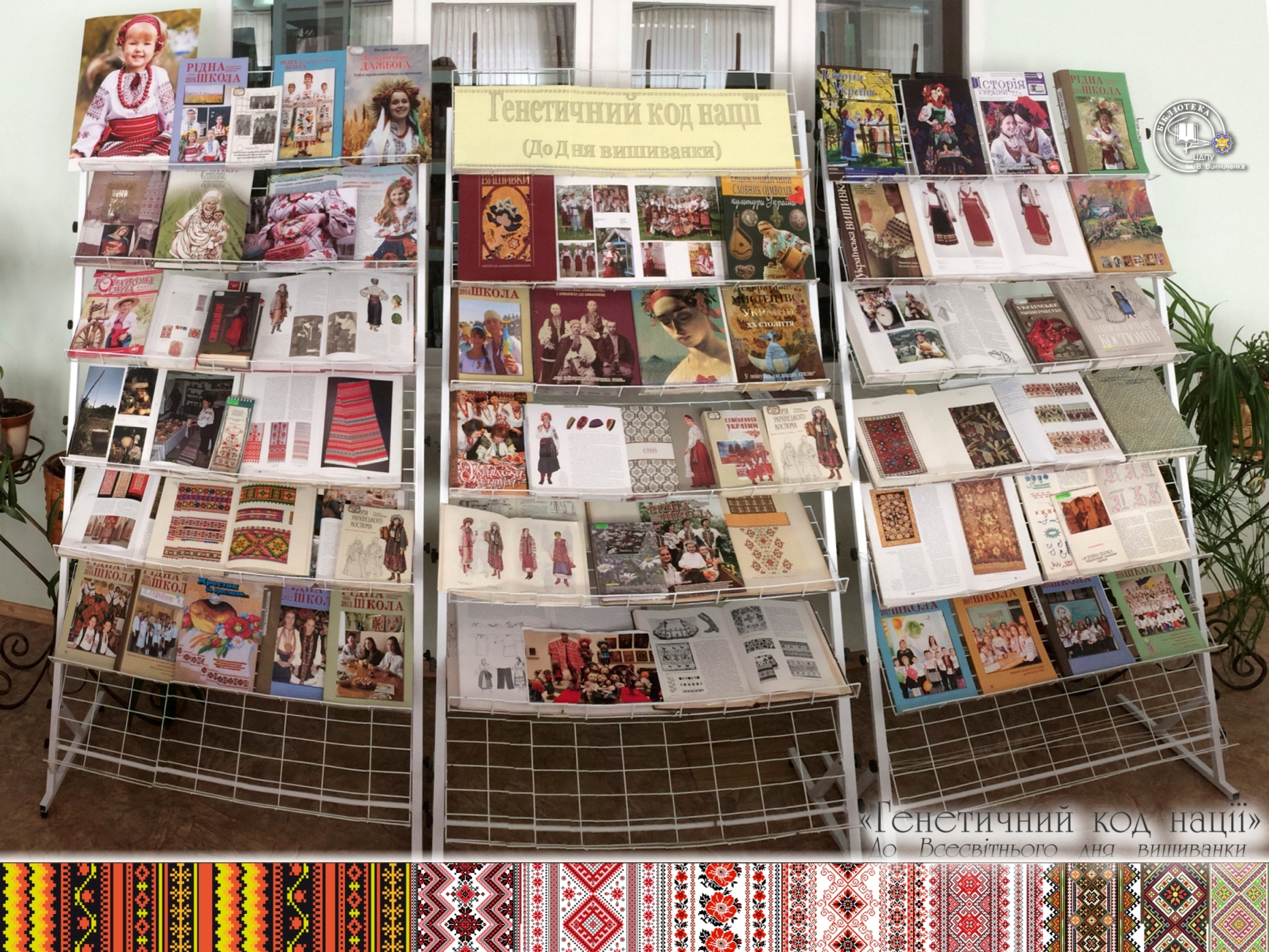 Бібліотека, маючи велику добірку літератури з краєзнавства, мистецтвознавства, етнографії, народознавства, довідково-енциклопедичних та періодичних видань, підготувала та репрезентувала для перегляду ілюстровану виставку про історичне минуле українського національного одягу та сучасні аспекти народної вишиванки.
