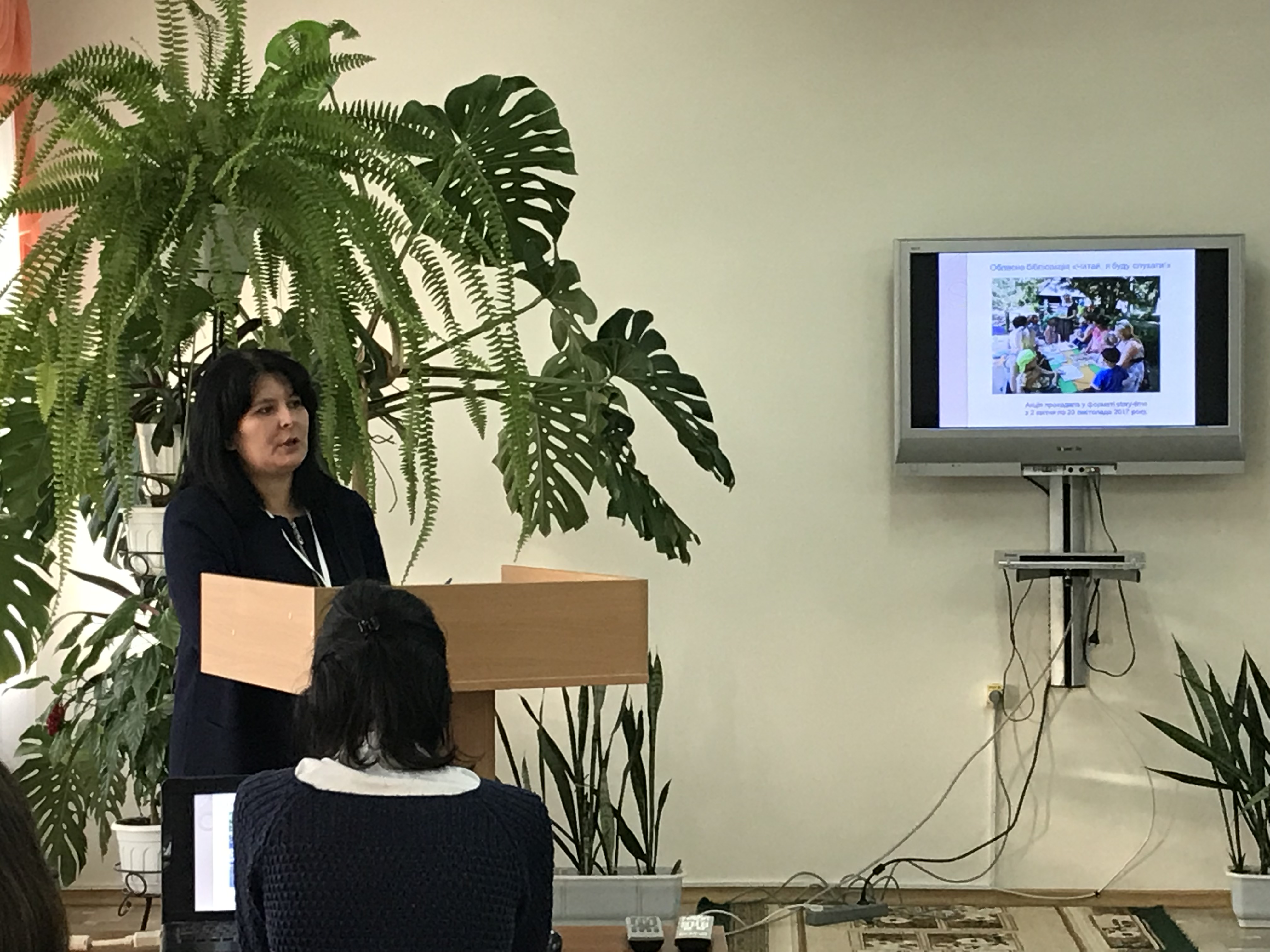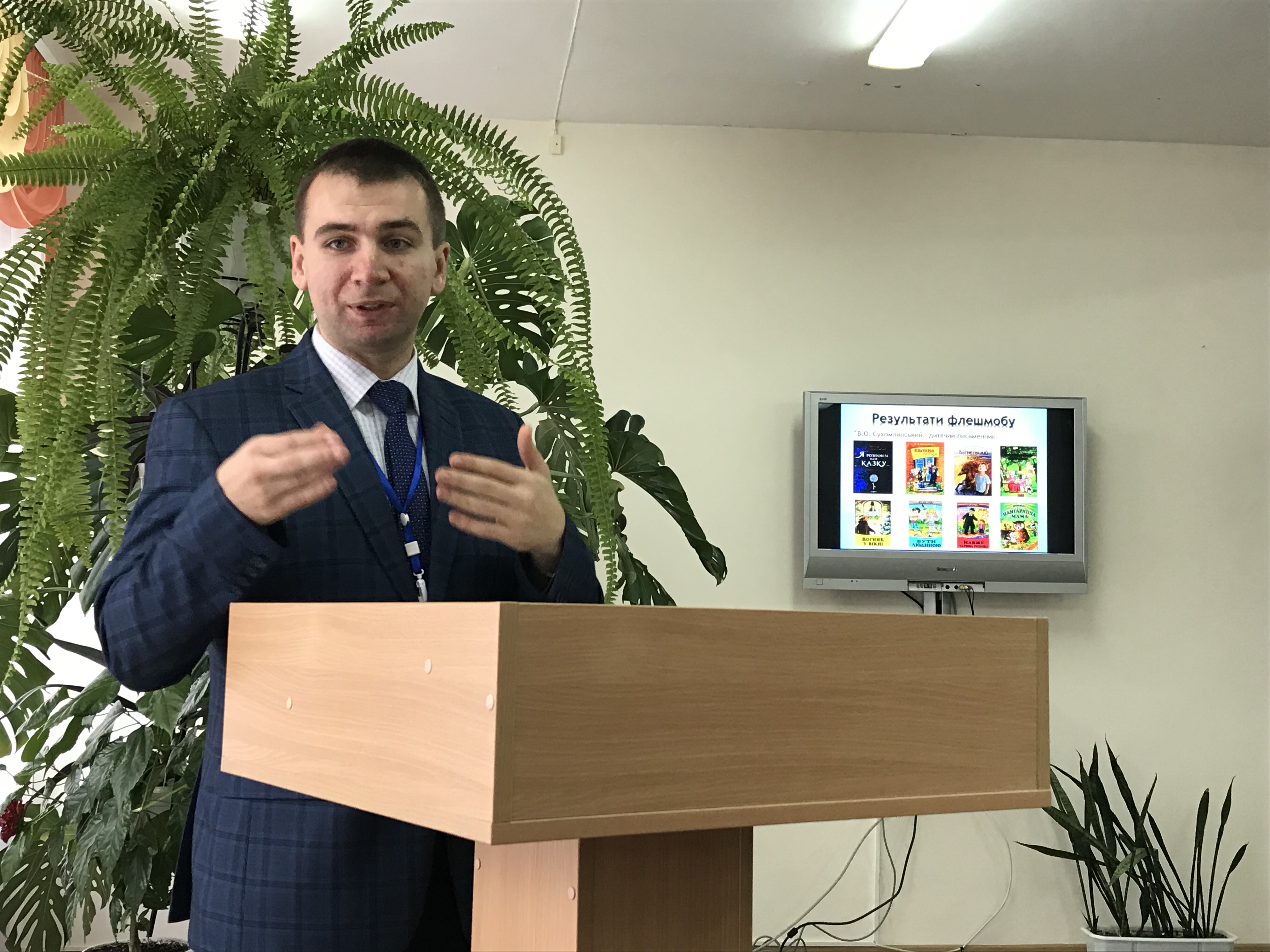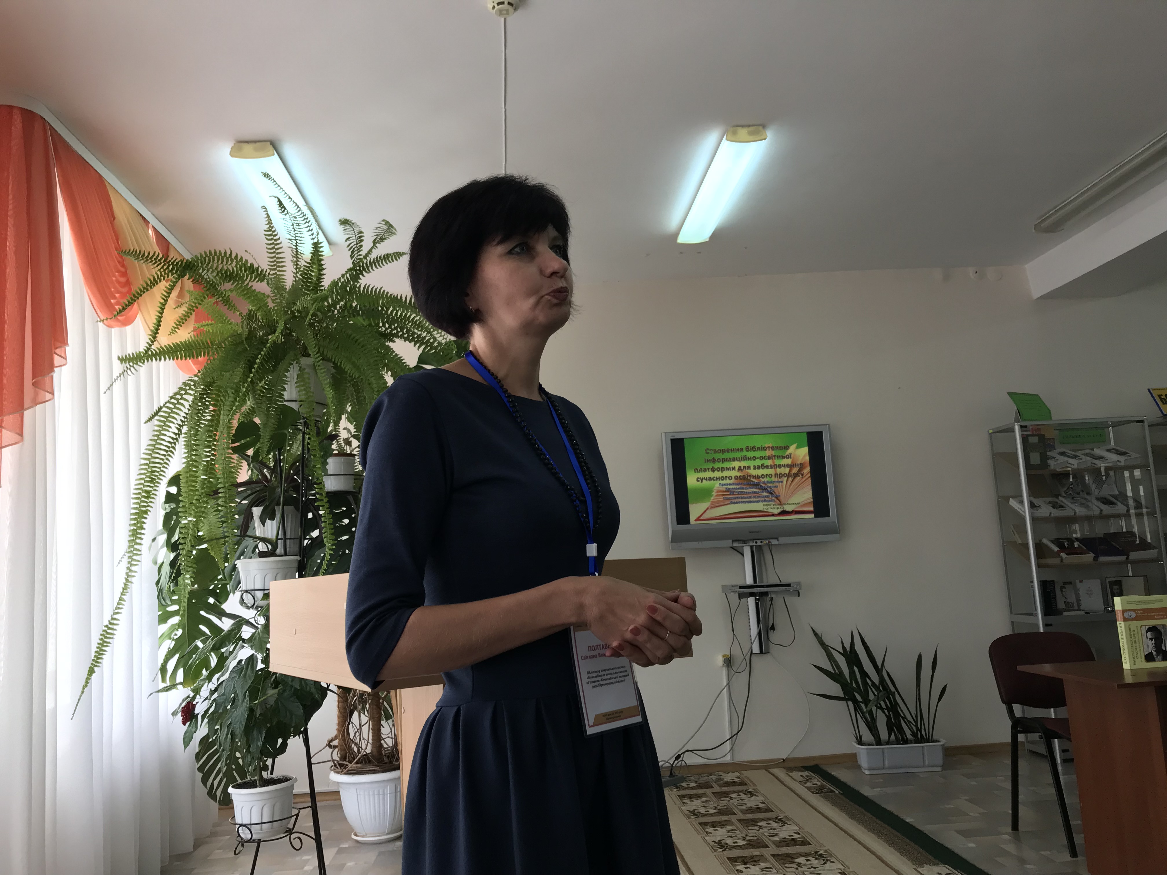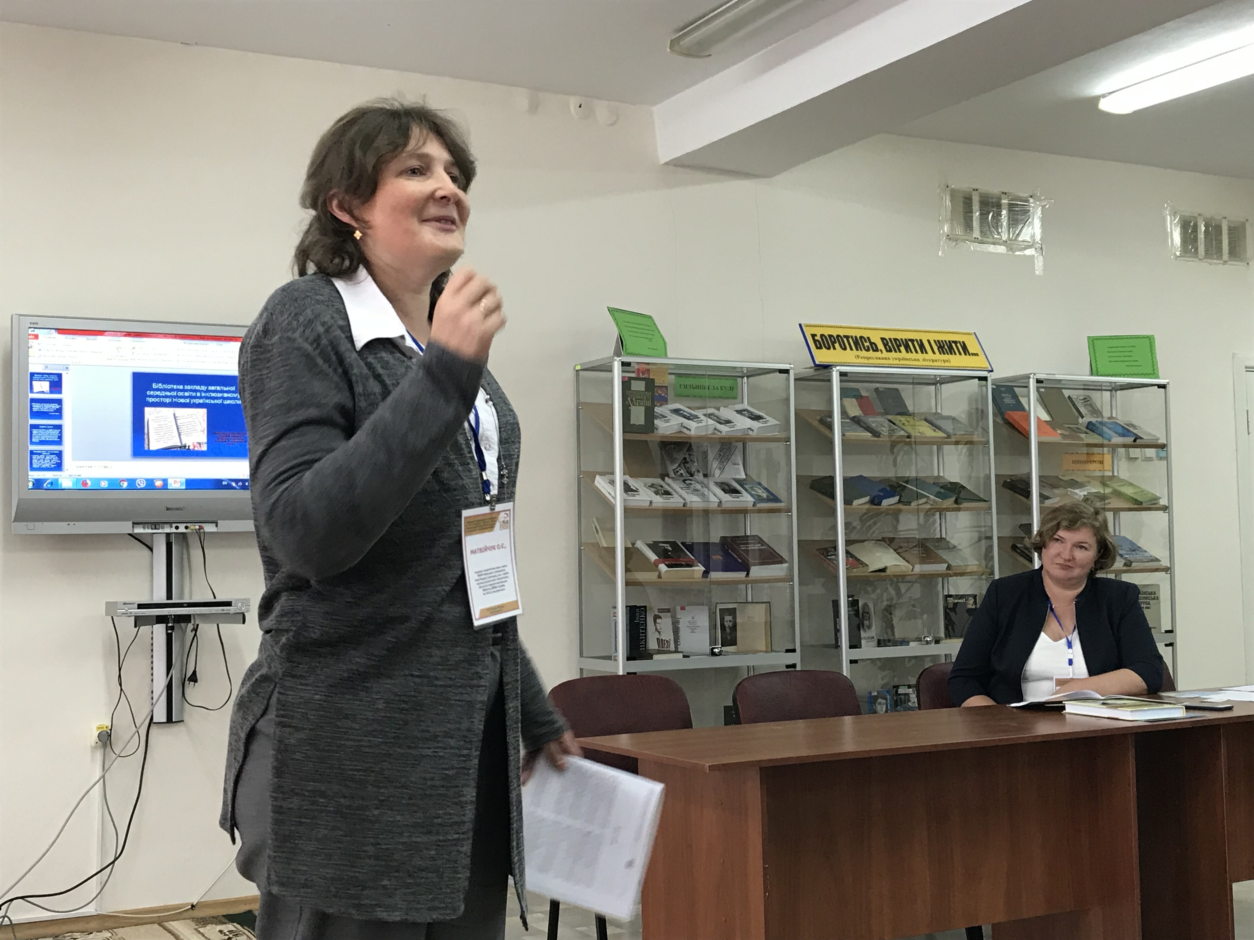 Про діяльність шкільних бібліотек у контексті педагогічної системи Василя Сухомлинського в умовах нового змісту освіти доповіла методист науково-методичної лабораторії виховної роботи та формування культури КЗ "КОІППО ім. В. Сухомлинського" Дяченко Надя іванівна та шкільні бібліотекарі: Бебих Ніна Анатоліївна, Гирба Антоніна Володимирівна, Ошедченко Оксана Олександрівна, Полтавець Світлана Владиславівна, Стеценко Галина Михайлівна.
