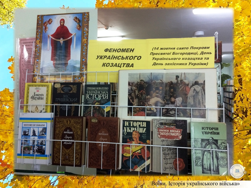 До Дня Покрови Пресвятої Богородиці, Дня Українського козацтва та Дня Захисника України універсальний читальний зал бібліотеки ЦДПУ ім.В.Винниченка запрошує всіх бажаючих відвідати ілюстровану книжну виставку «Воїни. Історія українського війська».