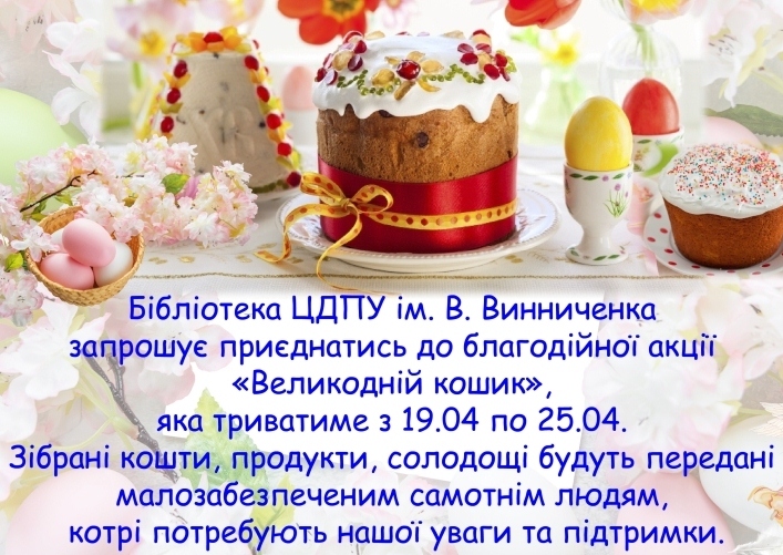 З 19 по 25 квітня в бібліотеці ЦДПУ імені В.Винниченка пройде благодійна акція для підтримки малозабезпечених самотніх людей.