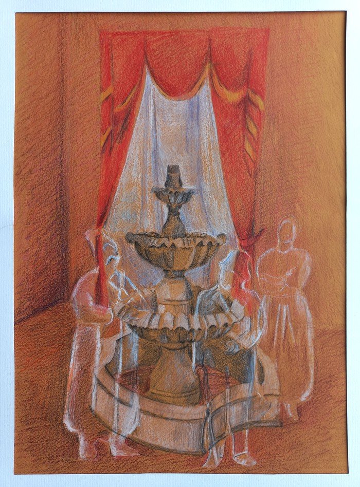 - Косяк Дар’я «Спогади», ІІI курс, 42×30, тонований папір, сангіна, кольорові олівці