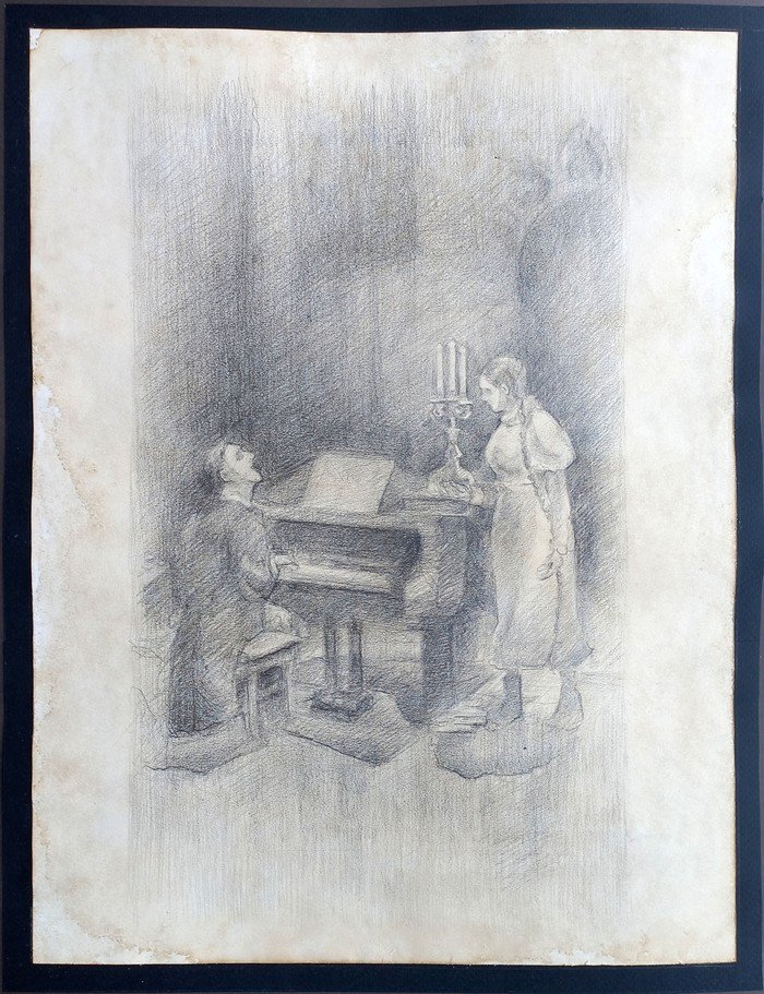 - Сваткова Ніка «Урок музики» (фрагмент з вистави «Ханума»), ІІI курс, 30×42, папір, графітні олівці
