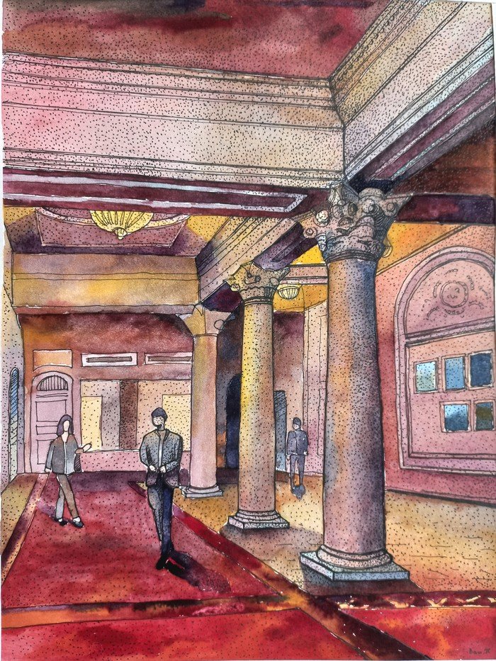 - Тоцька Надія «Театральне фойє», ІІ курс, 40×50, графіка