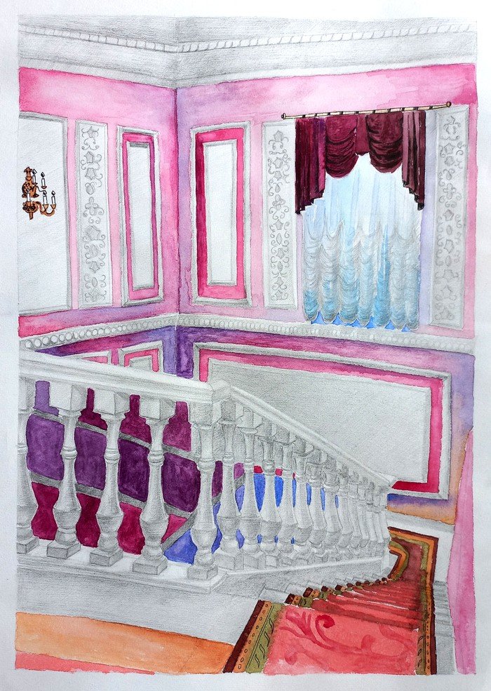 - Вихристенко Ірина «Сходи до мистецтва», ІІ курс, 35×42, акварель, графітний олівець