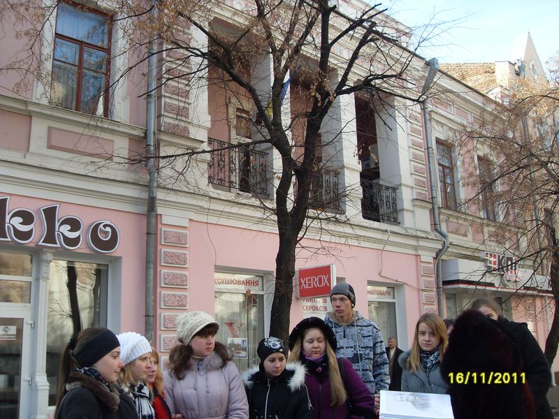 Для ознайомлення студентів гр. № 11 з історією міста – архітектурою, мистецьким та літературним життям "маленького Парижу", славетними постатями, життя яких пов’язане з містом у різні роки його розвитку, здійснено пішохідну екскурсію. Студенти дізналися багато цікавого, нового про історію міста. Студенти разом з куратором групи, доцентом кафедри методик початкового навчання Потєхою Людмилою Іванівною пройшли вулицями міста: від навчального корпусу № 1 до обласного краєзнавчого музею.