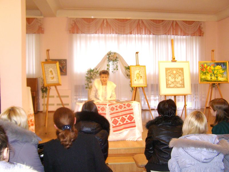 Тема зустрічі: «Українські національні традиції. Рушник». Ольга Володимирівна розповіла студентам про український рушник як оберіг роду, про особливості вишивання рушника, про символи і їх значення в малюнку рушника, про значення кольору орнаменту рушника. Студенти виявили інтерес до питання рушника у житті української родини, його вплив на долю роду.