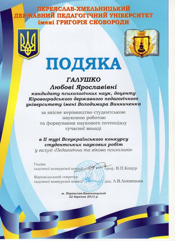 На Всеукраїнський конкурс наукових робіт з природничих, технічних і гуманітарних наук Кіровоградський державний педагогічний університет імені Володимира Винниченка направив декілька студентських робіт. Осторонь не залишився факультет педагогіки та психології.