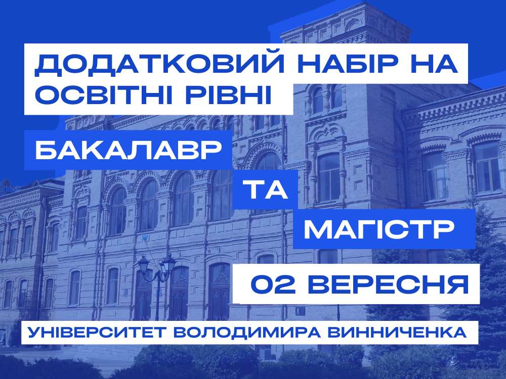 Університет імені Володимира Винниченка оголошує додатковий набір на навчання за кошти фізичних та юридичних осіб (виключно комерція).
