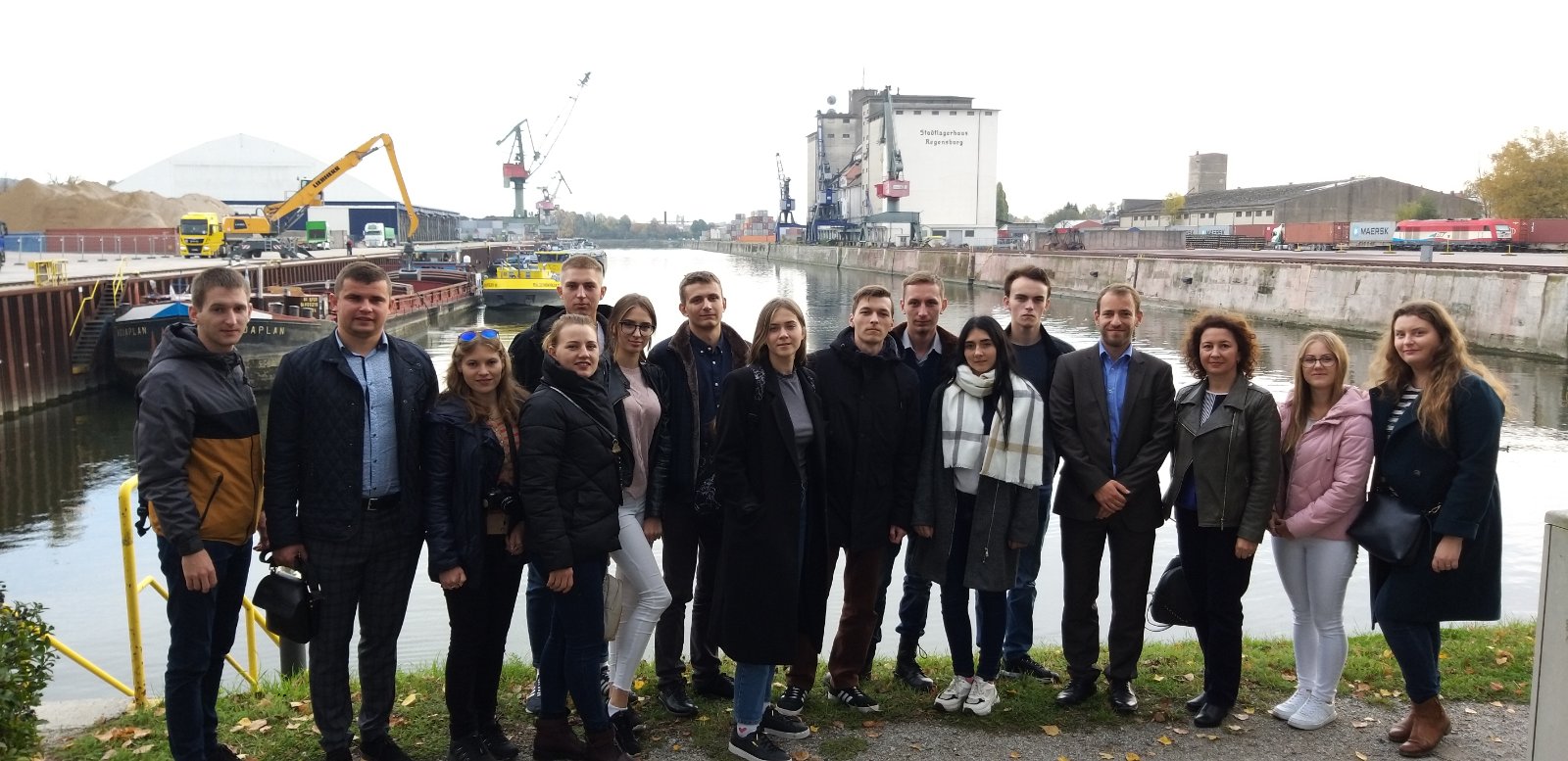 Дев’ятий день практики почався з першої столиці Баварської землі - міста Регенсбург, який розташований на злитті річок Дунаю і Регена. Регенсбург є одним з найстаріших міст країни з чудовою історичною спадщиною, частина якого внесена до списку Всесвітньої спадщини ЮНЕСКО. Місто має давню історію ще з часів кам’яної доби та заселення римлянами. Потрапити в місто можна найдавнішим мостом Німеччини, якому 800 років. У часи другої світової війни місто майже не зазнало бомбардування, і тому, збереглися в гарному стані споруди різних часів, які «притягують» тисячі туристів, наприклад, як Регенсбурзький собор, котрий будували 200 років Регенсбург є важливим портовим центром Німеччини, тому що, Дунай з’єднаний каналом з Рейном, і тому є сполучення між Чорним та Північним морем. І наше знайомство з місто розпочалося з екскурсії в порту, який динамічно розбудовує інфраструктуру та в який, минулого року, вклали понад мільйон євро інвестицій, адже річкові перевезення є найдешевшими та найекологічнішими. Порт Регенсбурга перевантажує за рік 1,1 млн. тонн вантажів.